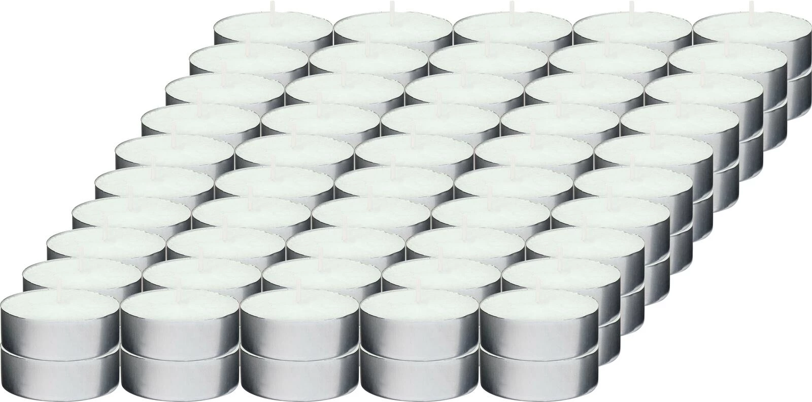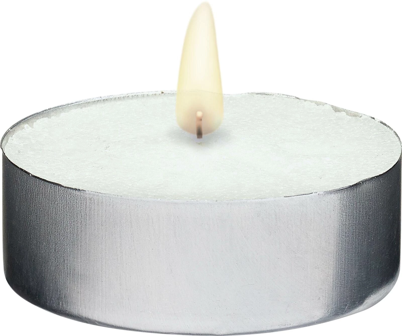 Die Teelichter haben eine Brenndauer von je ca. 4 Stunden und bestehen aus 100 % Paraffin. Ø 4 cm. H: 1,3 cm.