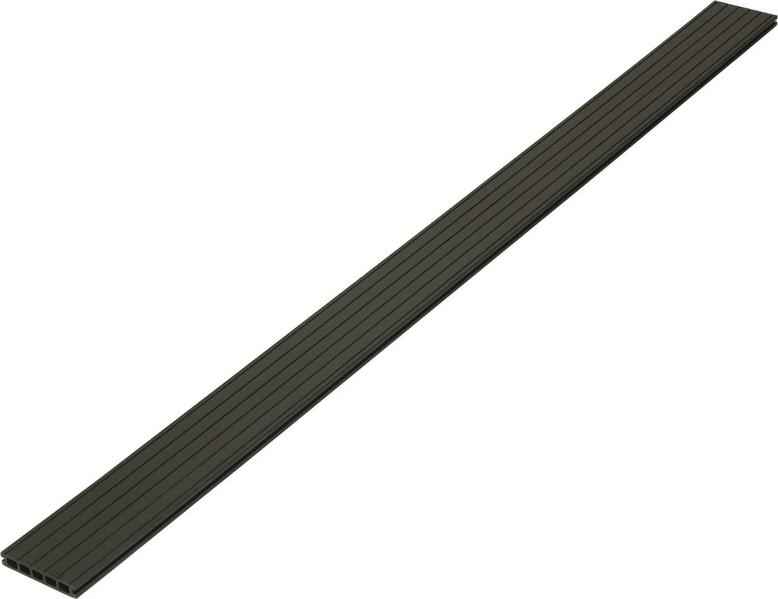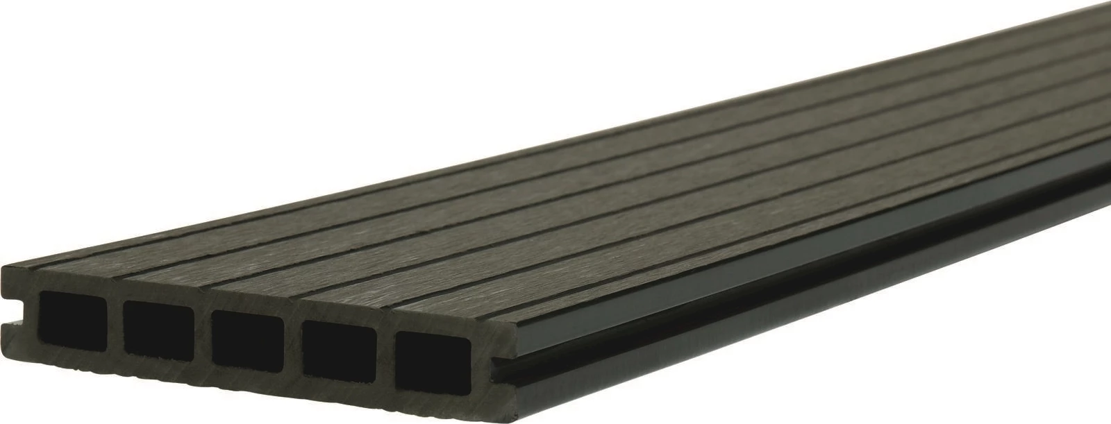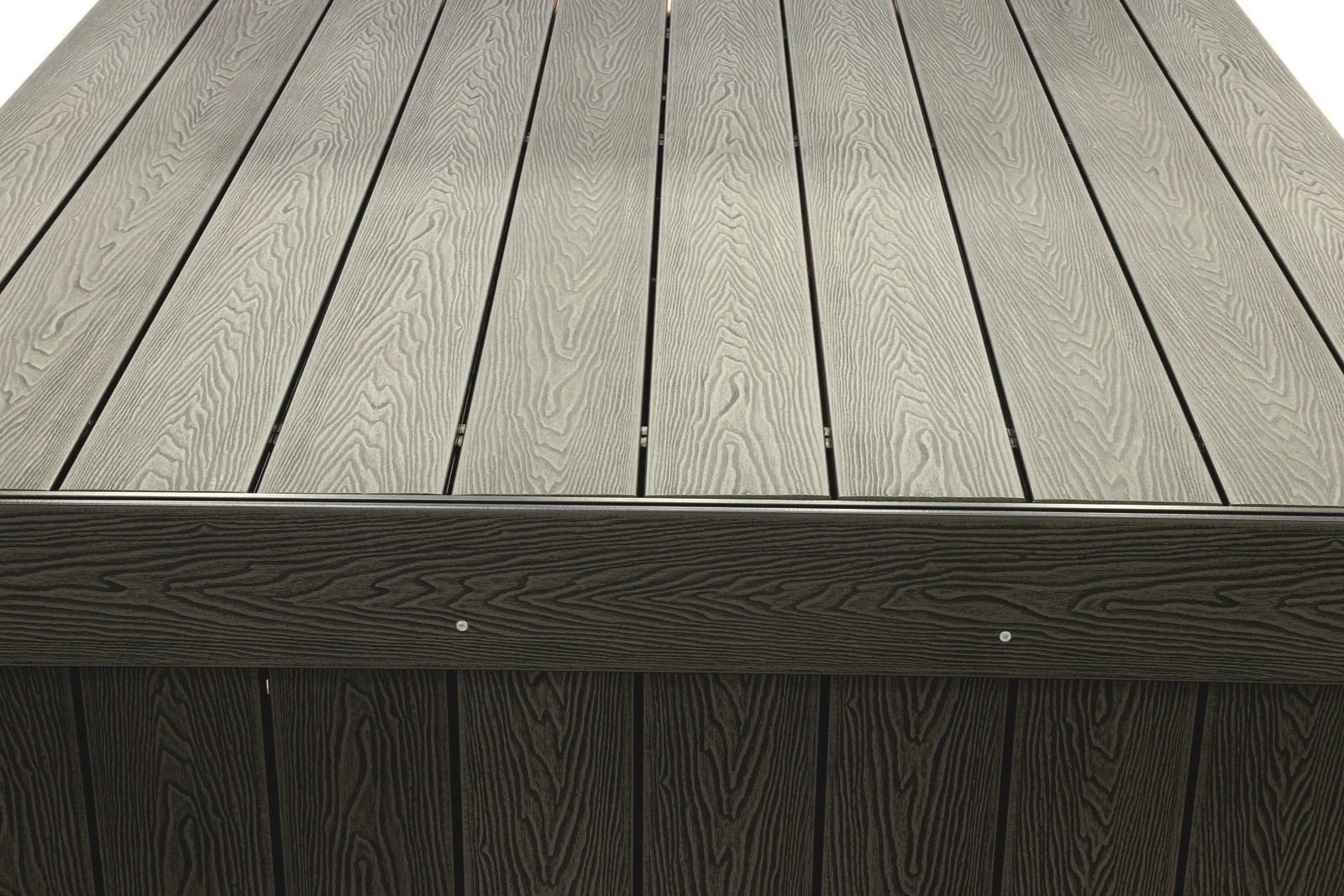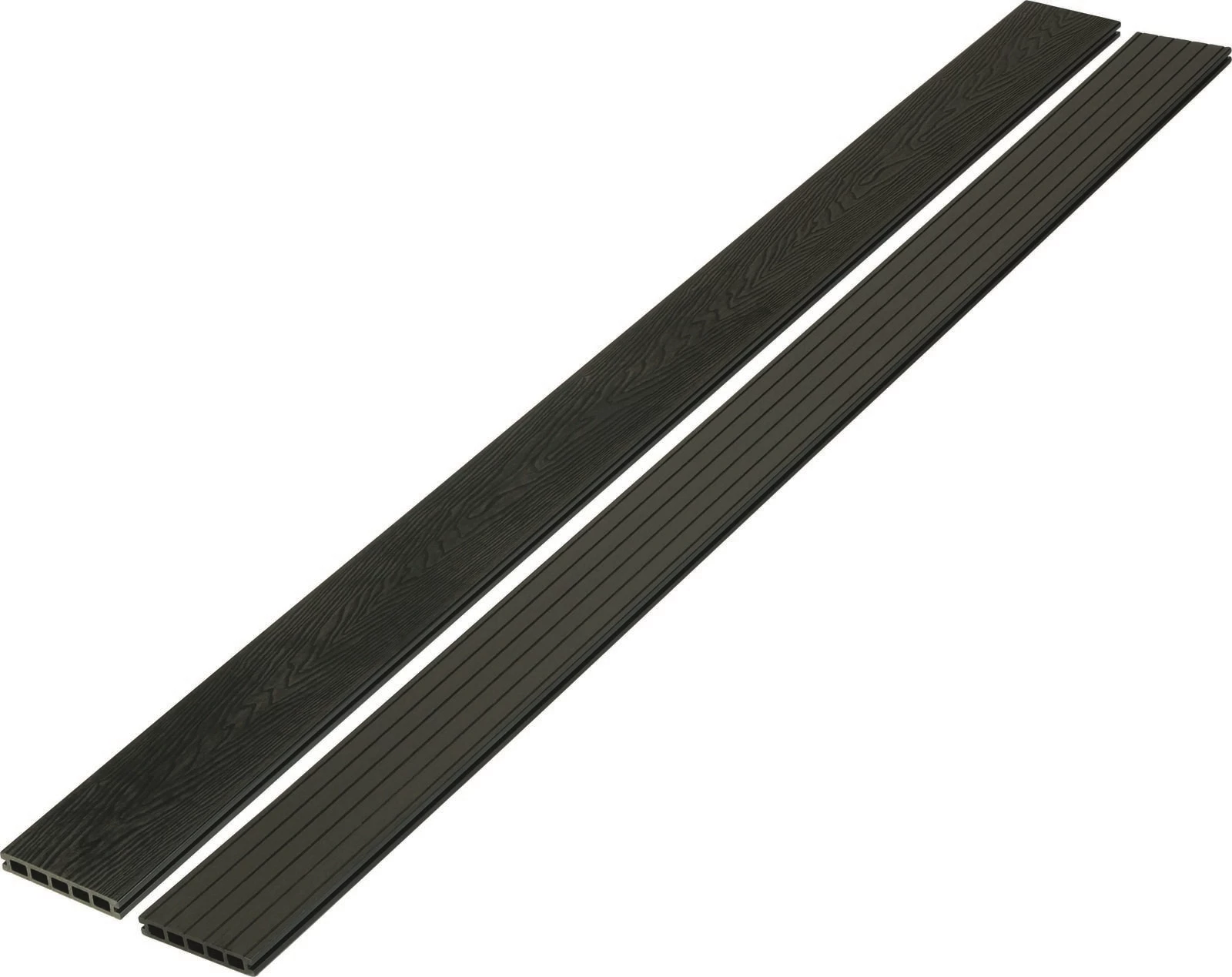 Eine Seite Holzoptik, andere Seite mit Rillen. Stärke: 25 mm. Farbe: anthrazit. Material: WPC (Wood-Plastic-Composites).