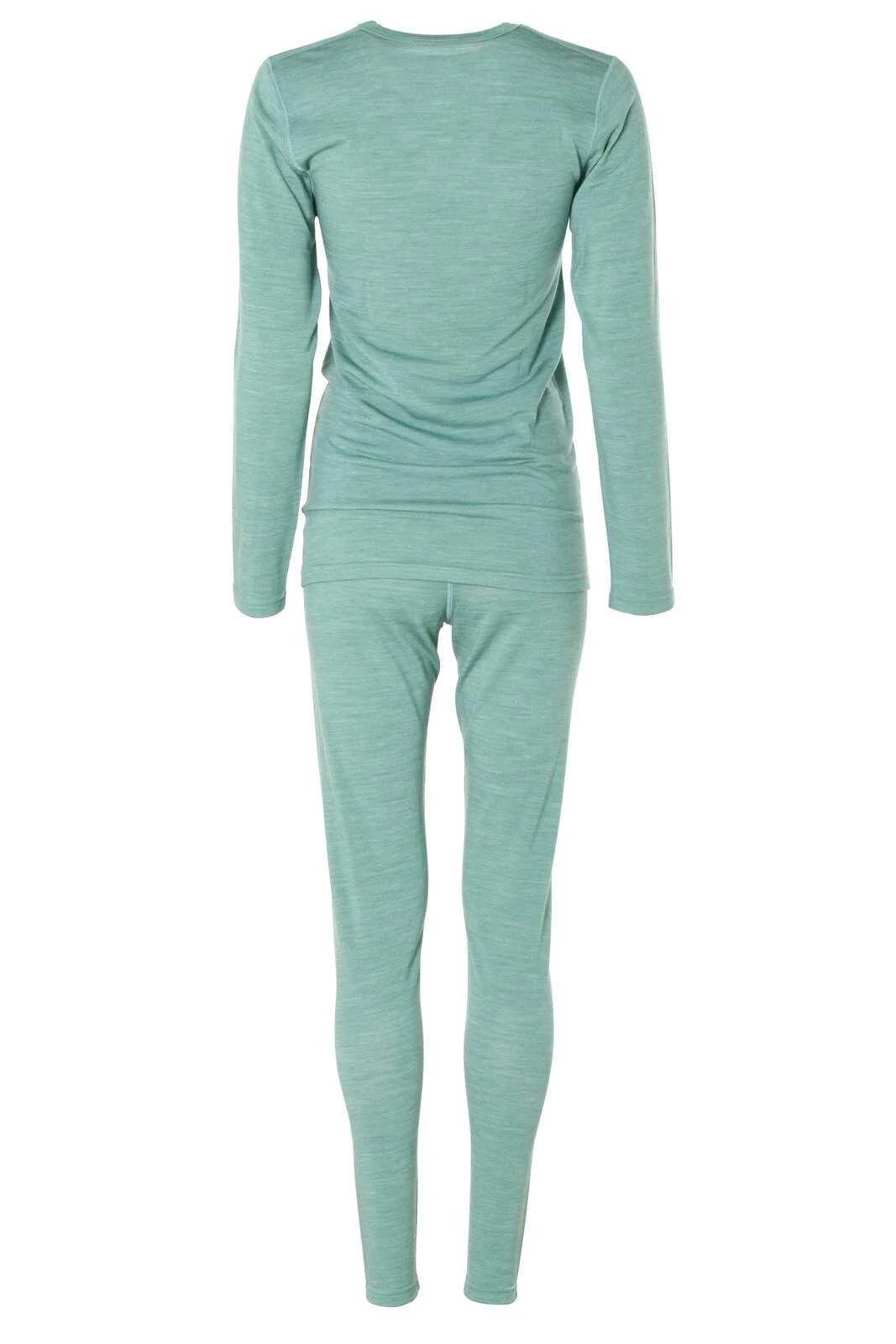 Das Material besteht aus 55 % Polyester und 45 % Merino-Wolle, eine perfekte Mischung für Atmungsaktivität, Wärmeisolierung und Feuchtigkeitsregulierung. Während die Merino-Wolle für natürliche Wärme und ein weiches Tragegefühl sorgt, macht der Polyesteranteil das Set pflegeleicht und langlebig.
