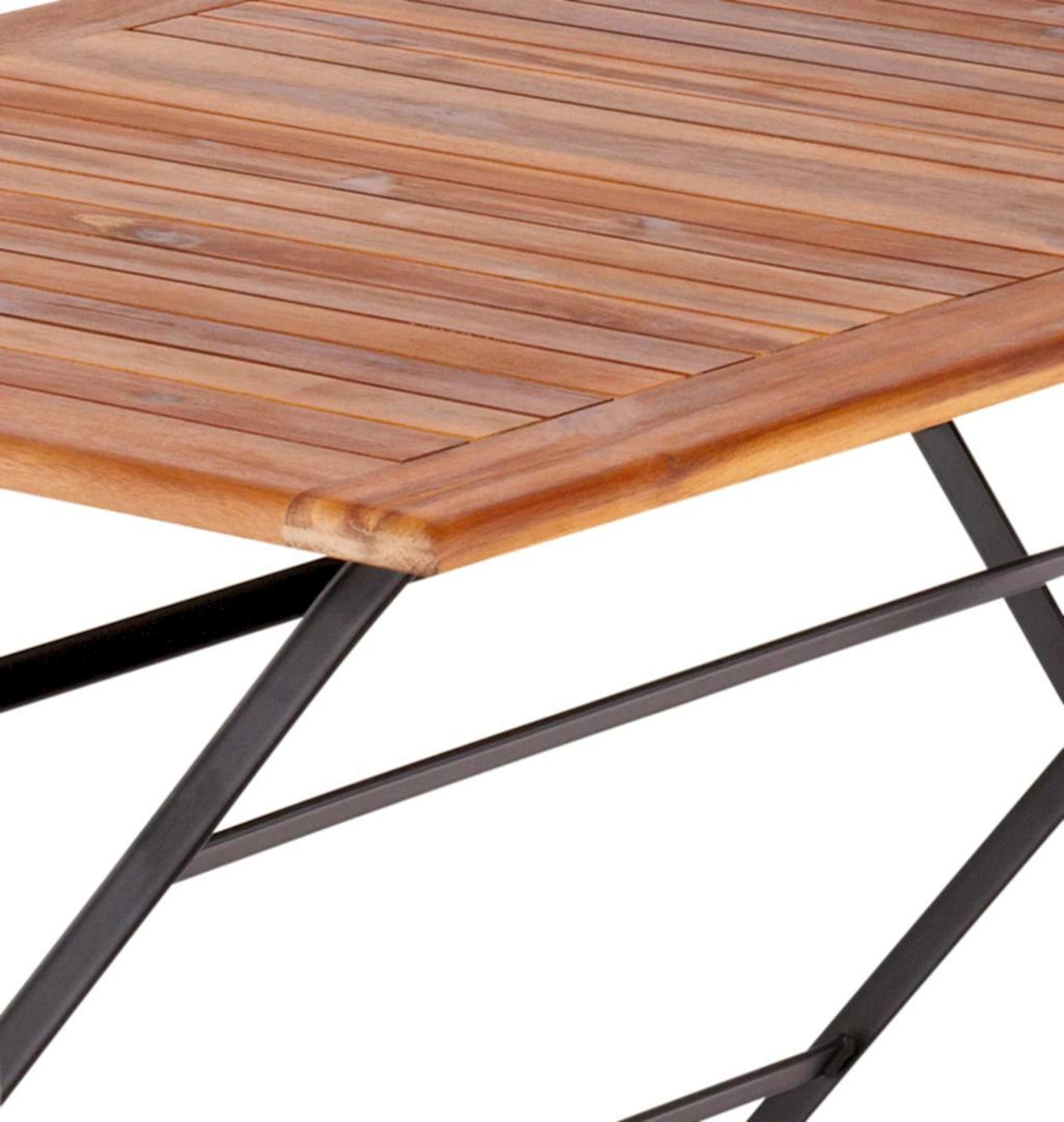 Mit diesem klappbaren Gartentisch verschönern Sie den Garten, die Terrasse oder den Balkon. Der Rahmen besteht aus Metall und die Latten sind aus Akazienholz gefertigt. Die Eigenschaften des Holzes sind wasserfest und UV-beständig. Daher muss er nicht bei jedem kleinen Regenschauer oder direkter Sonneneinstrahlung unmittelbar geschützt werden. Dieser Tisch erinnert an einen traditionellen Biergarten und passend dazu gibt es den Biergarten Stuhl. Die maximale Tragkraft liegt bei 60 kg und seine Masse betragen 123 × 76 × 74,5 cm. Er ist unmontiert.
