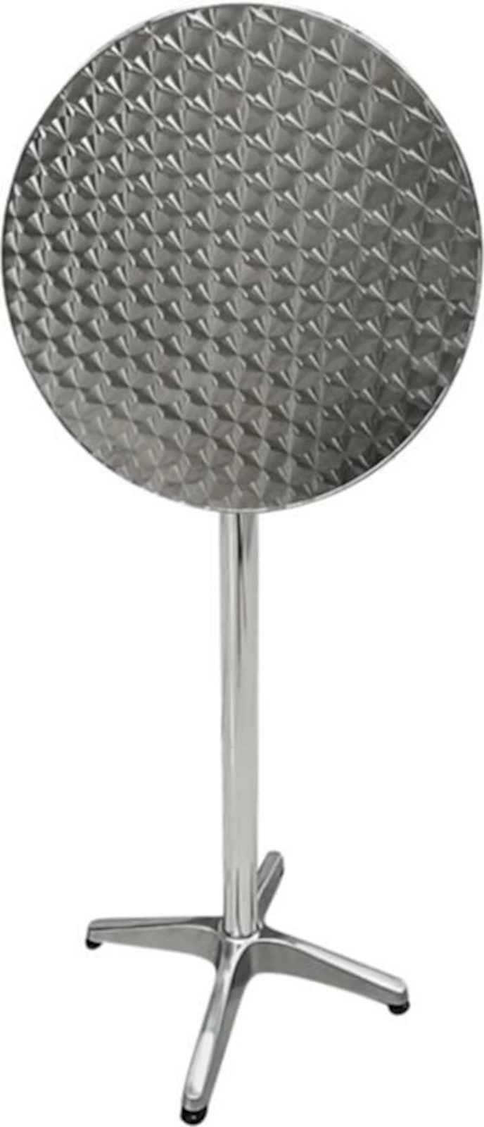 Der robuste Stehtisch aus Alu in seinem zeitlosen und neutralen Design ist ideal für Draussen und Drinnen geeignet. Das Material besteht aus Alu und dieses wird im Druckgussverfahren hergestellt. Zudem sind der Rand und die Kanten abgebogen. Die Tischplatte besteht aus Inox mit einem Kreiszapfenanschliff und ist kippbar. Mittels dem 4-Fuss hat der Bartisch einen stabilen Halt und die maximale Tragkraft liegt bei 80 kg.