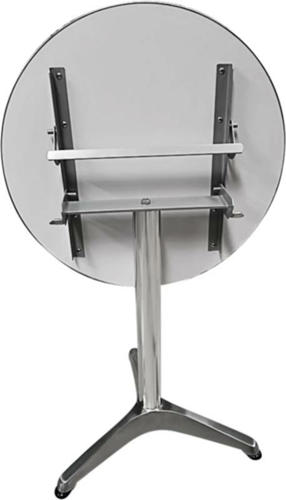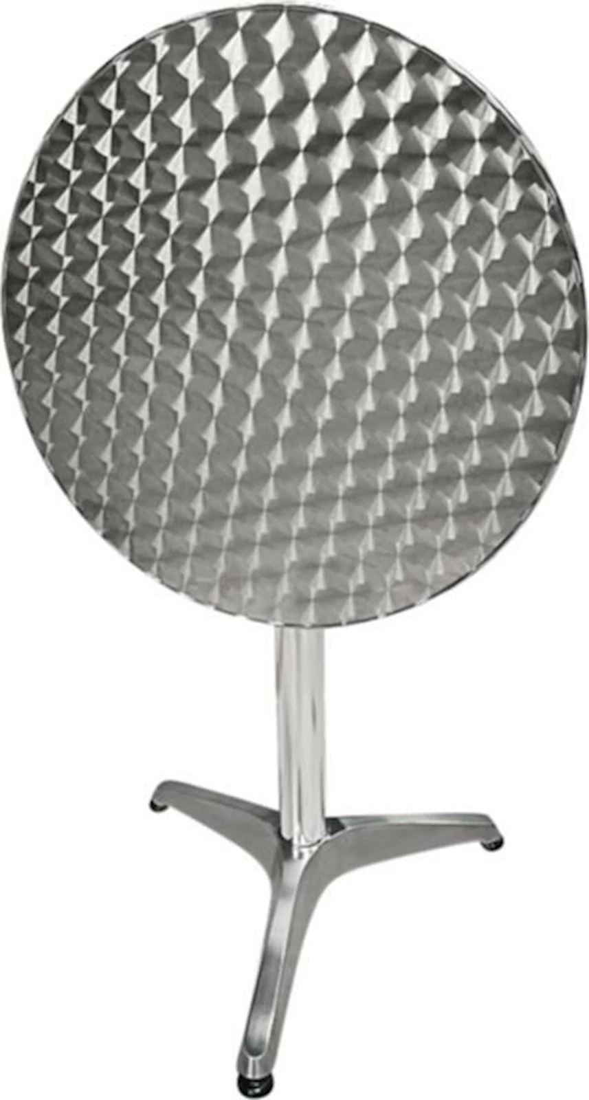 Der robuste Alutisch in seinem zeitlosen und neutralen Design ist ideal für Draussen und Drinnen geeignet. Passend dazu gibt es den Stuhl Alu. Das Material besteht aus Alu und dieses wird im Druckgussverfahren hergestellt. Zudem sind der Rand und die Kanten abgebogen. Die runde Tischplatte besteht aus Inox mit einem Kreiszapfenanschliff und ist kippbar. Mittels dem 3-Fuss hat der Tisch einen stabilen Halt und die maximale Tragkraft liegt bei 80 kg.