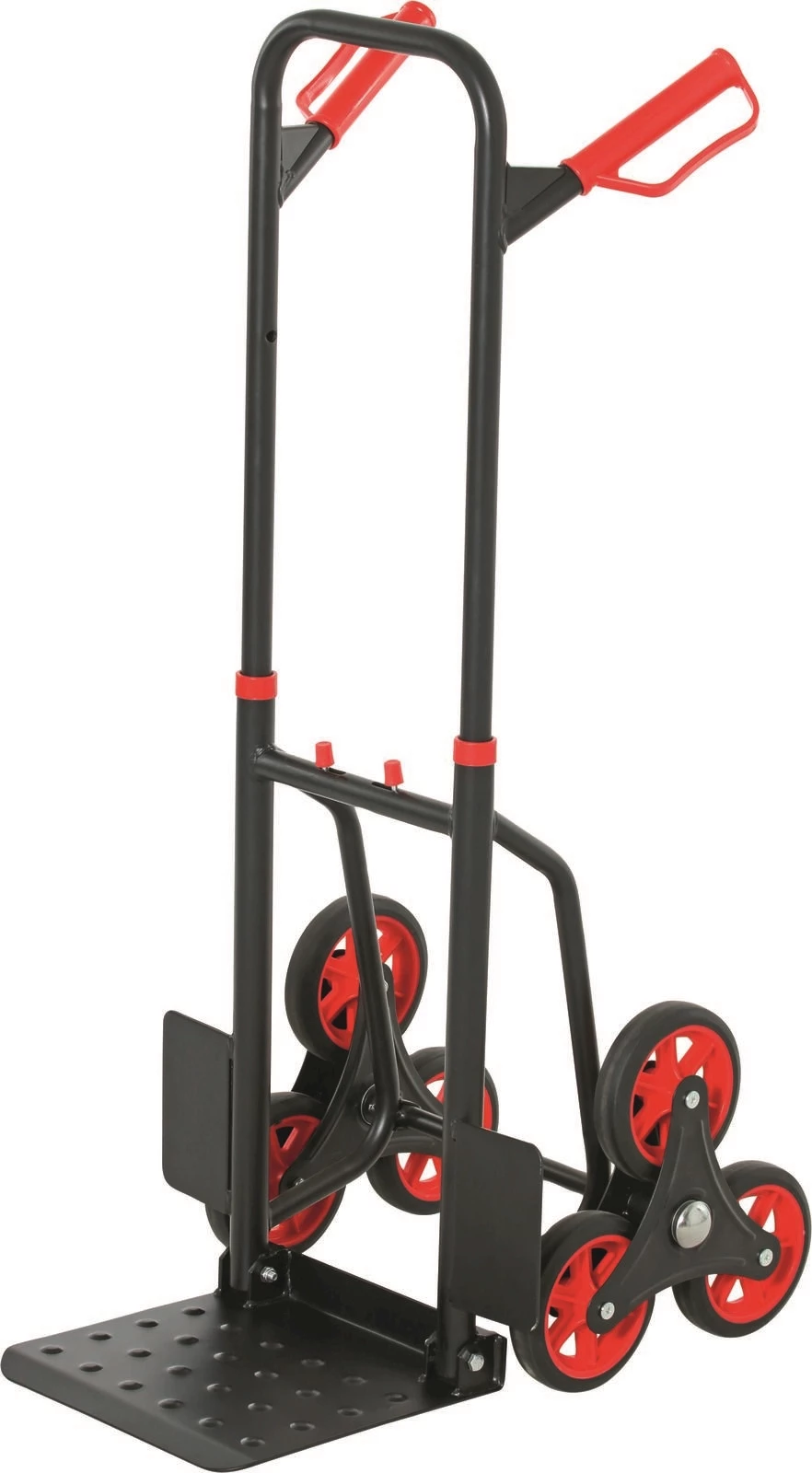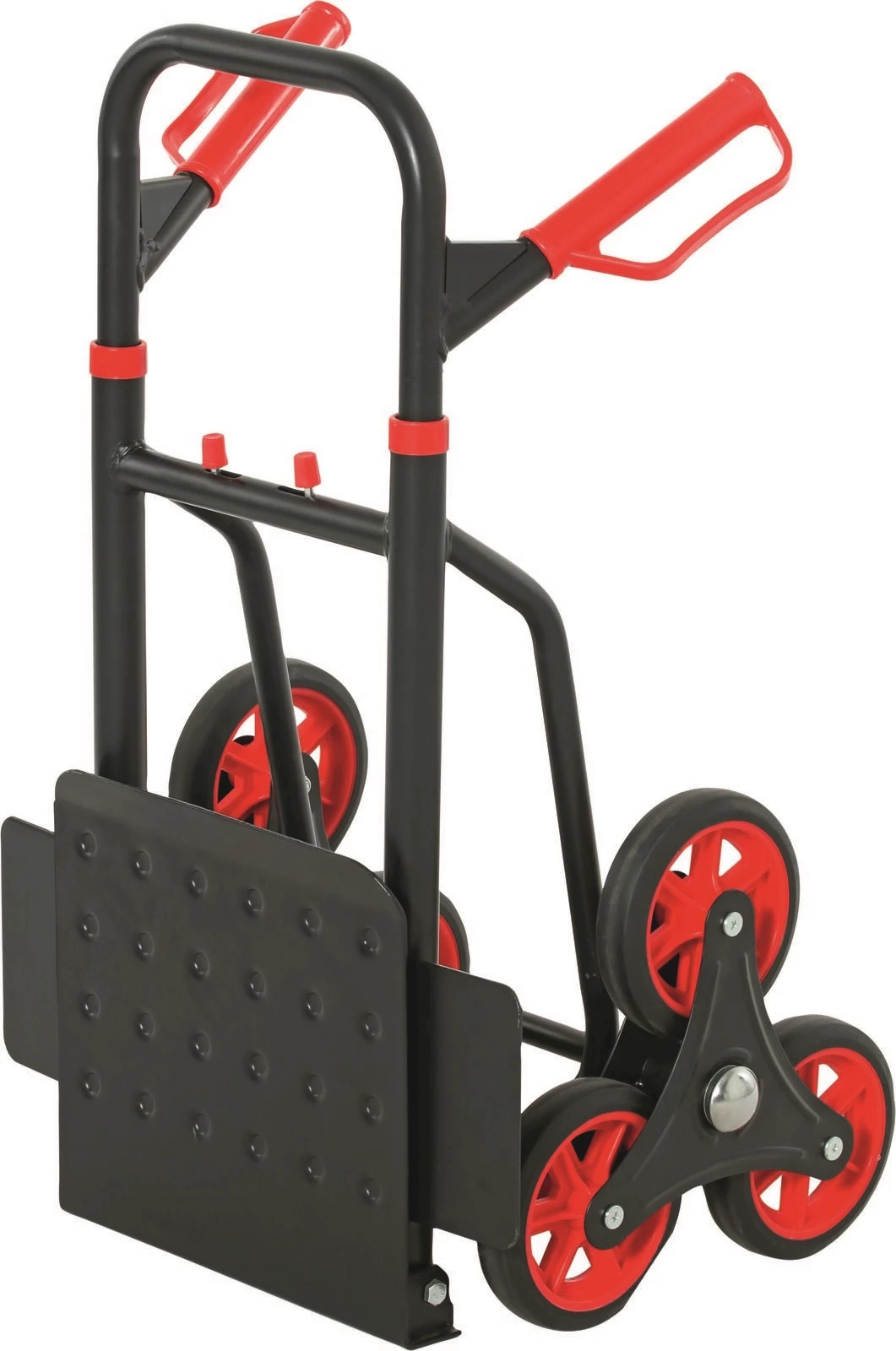Klettertreppenwagen bestehend aus qualitativ hochwertigem Hochleistungsstahl. Maximale Nutzlast für den Wagen beträgt 150 kg. Mit einer Ladefläche von 31 × 29 cm und einem Raddurchmesser von 14,8 cm ist der Treppenwagen vielseitig einsetzbar.