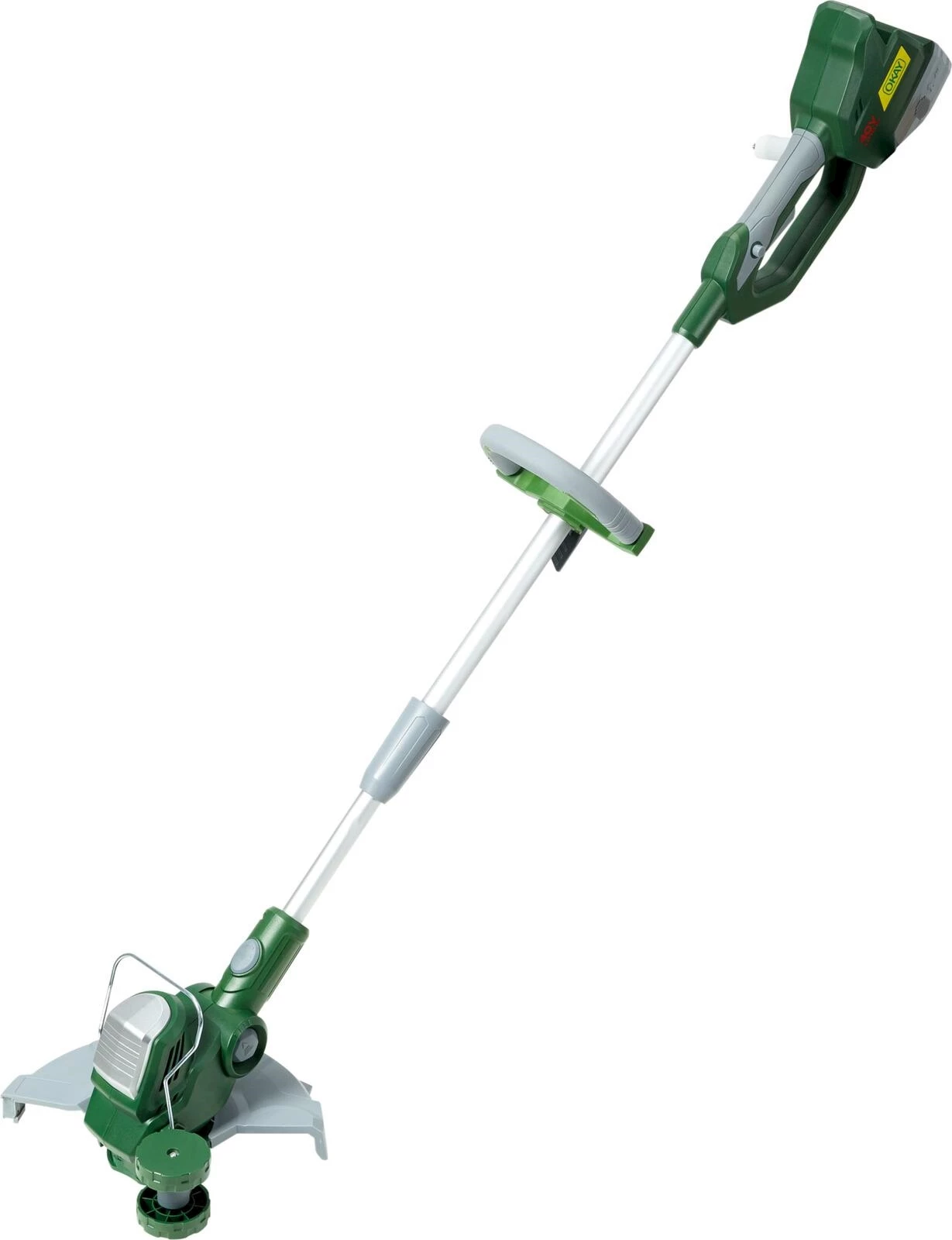 Rasentrimmer mit Teleskop- und höhenverstellbarem Zusatzhandgriff. Gewicht: 2,8 kg. Ohne Akku und Ladegerät.
