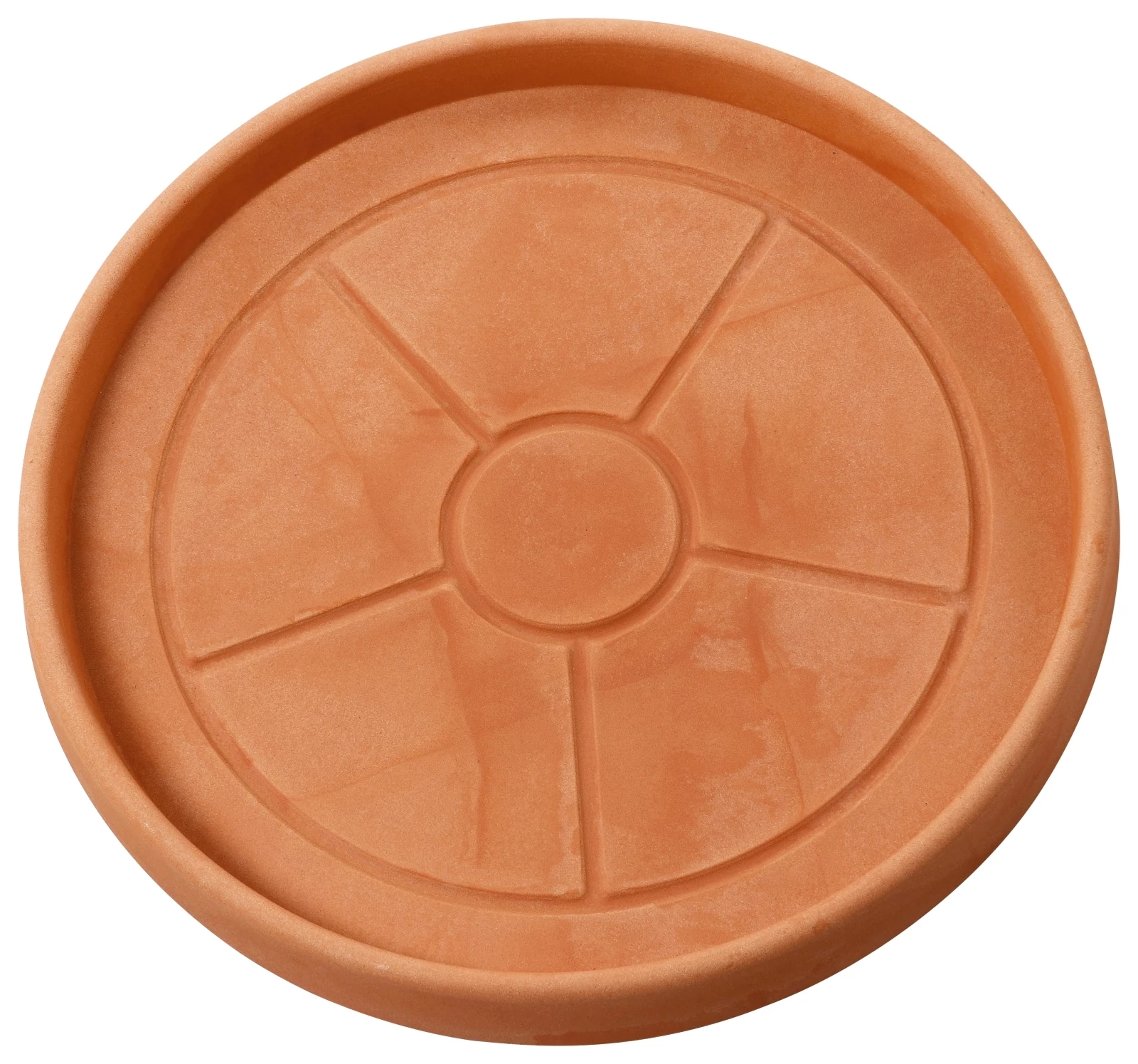 Der Unterteller terracotta wird aus Polyethylen hergestellt und ist für den Aussenbereich geeignet. Farbe: Terracotta. Masse: 54 × 5,1 cm.