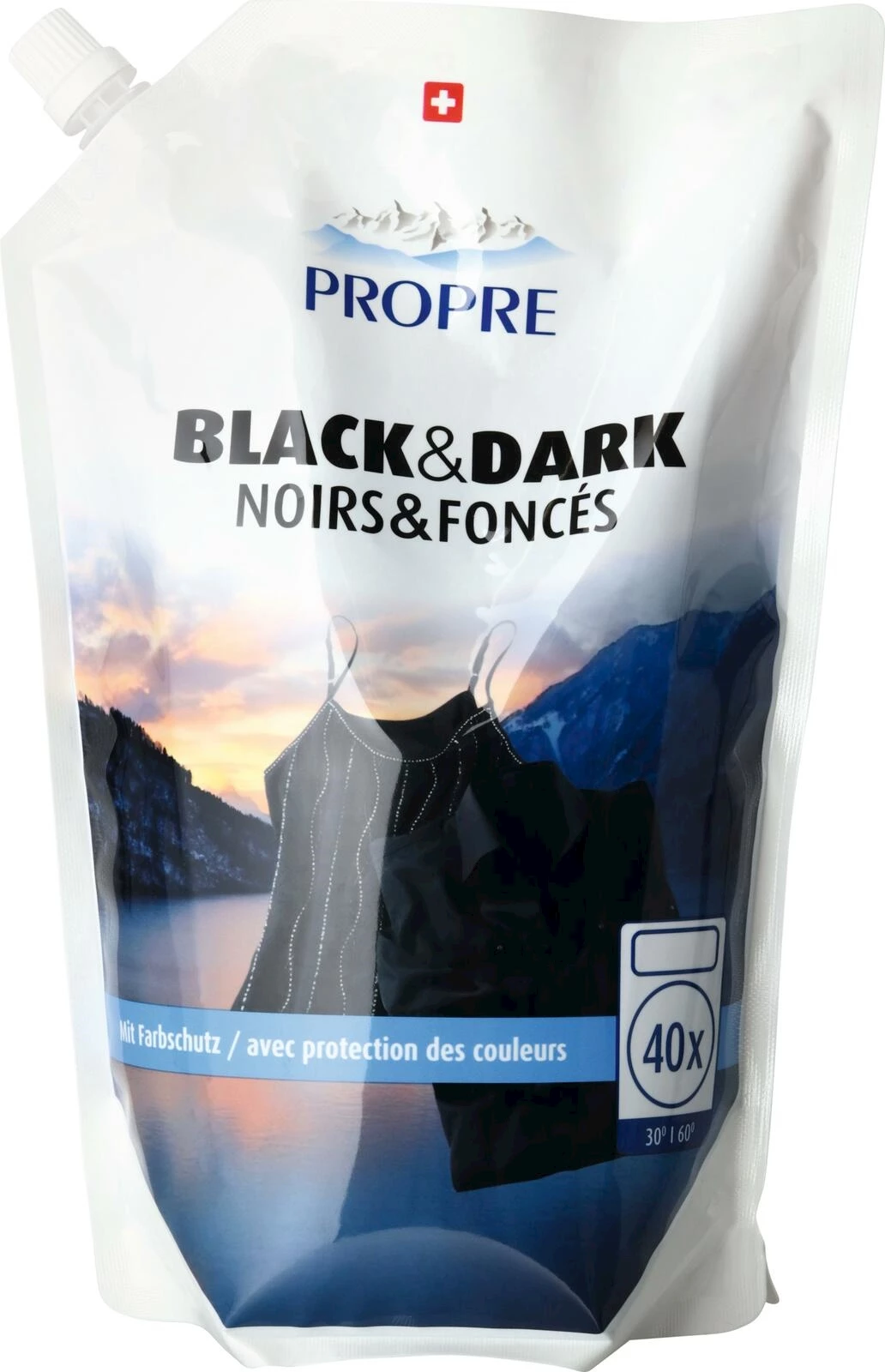 Propre. Für 40 Waschgänge. Für dunkle und schwarze Textilien geeignet.