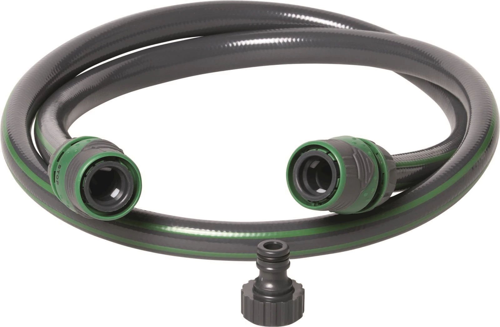 Das Anschlussset Schlauchwagen wird verwendet um einen Schlauchwagen mit dem Wasserhahn zu verbinden. Im Set inbegriffen ist: 1 Hahnstück G 3/4" (26,5 mm), eine Schlauchkupplung 1/2" (12 mm) - 5/8" (15 mm), eine Schlauchkupplung mit Wasserstopp 1/2" (12 mm) - 5/8" (15 mm) und 1,5 m Wasserschlauch 5/8" (15 mm). Der maximale Wasserdruck beträgt 8 bar.