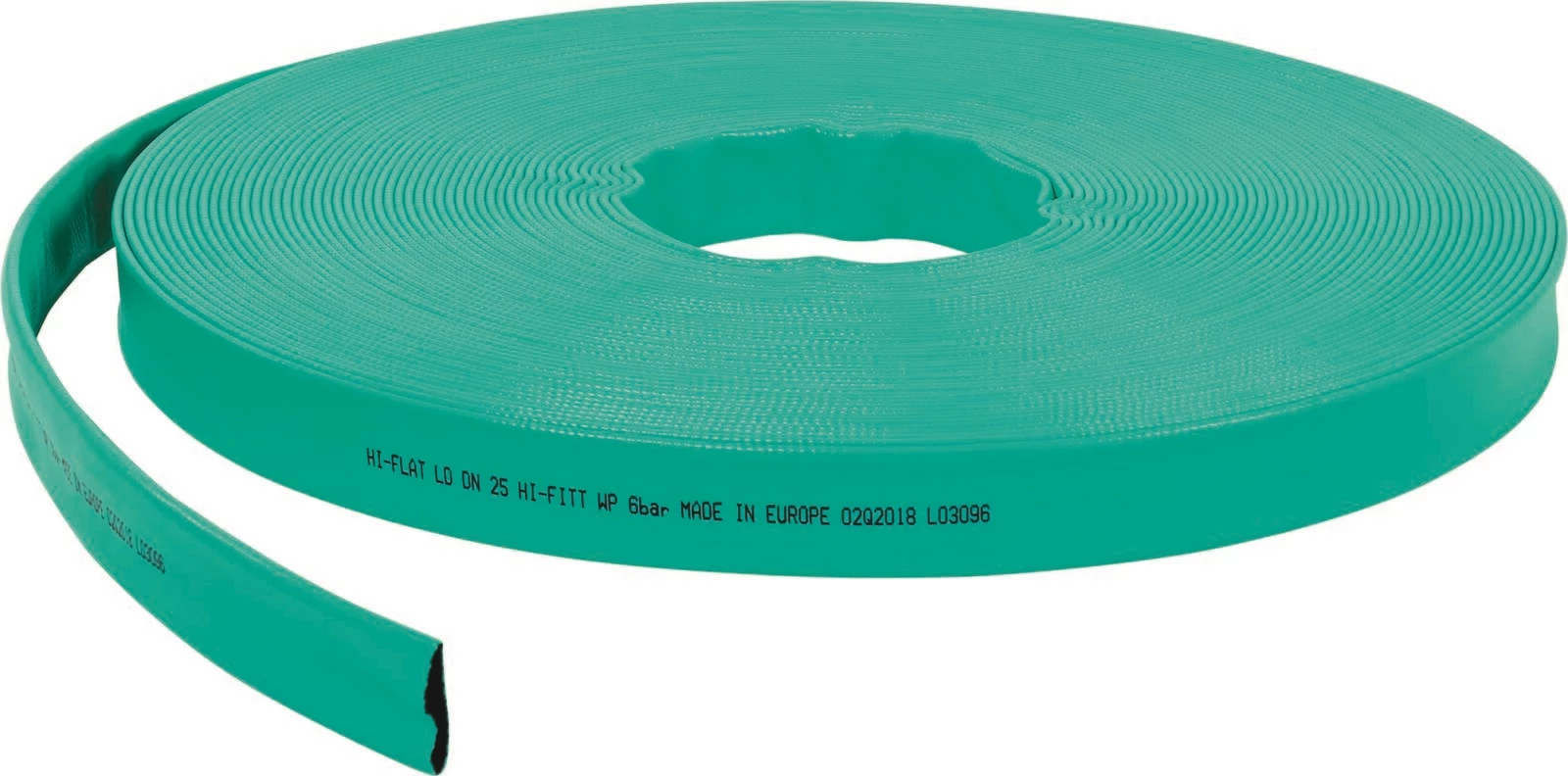Der Flachschlauch zu Tauchpumpen 1" wird zum Durchleiten von Wasser unter leichtem Druck, sowie Vakuum bei Tauch- oder Entwässerungspumpen eingesetzt. Er ist geeignet für Wasser, Säuren, Basen, Laugen und andere Flüssigkeiten, für den leichten Einsatz in der Industrie, Bewässerung, Schädlingsbekämpfung, Pulver- und Staubbeförderung mit Haus-und Gartenpumpen. Der flache Schlauch ist 50 m lang, hat eine Lichtweite von 1" und ist temperaturbeständig bei -10 °C - +50 °C im Dauerbetrieb. Hergestellt wird er aus flexiblen Weich-PVC mit Gewebeverstärkung. Sie können den Schlauch bist zu einem maximalen Arbeitsdruck von 4 bar einsetzen. Der Berstdruck liegt bei 18 bar.