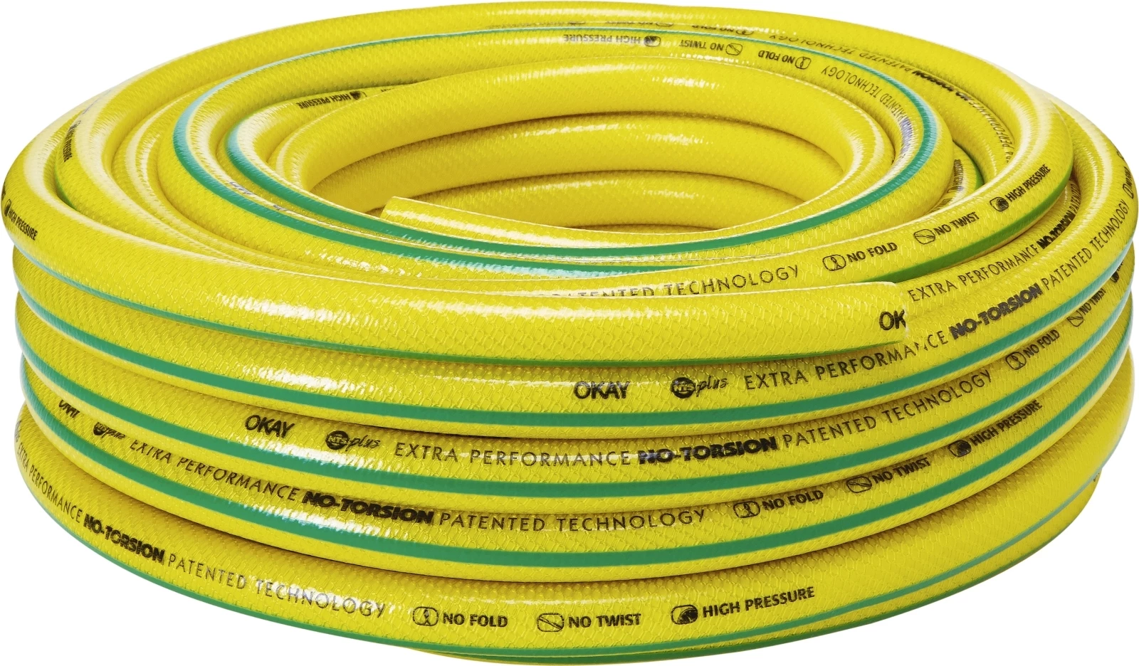 Okay. Verwindet und verschlingt nicht. Breite: Ø 5/8" (15 mm). Arbeitsdruck: 12 bar. Berstdruck: 36 bar. Ohne Armaturen.