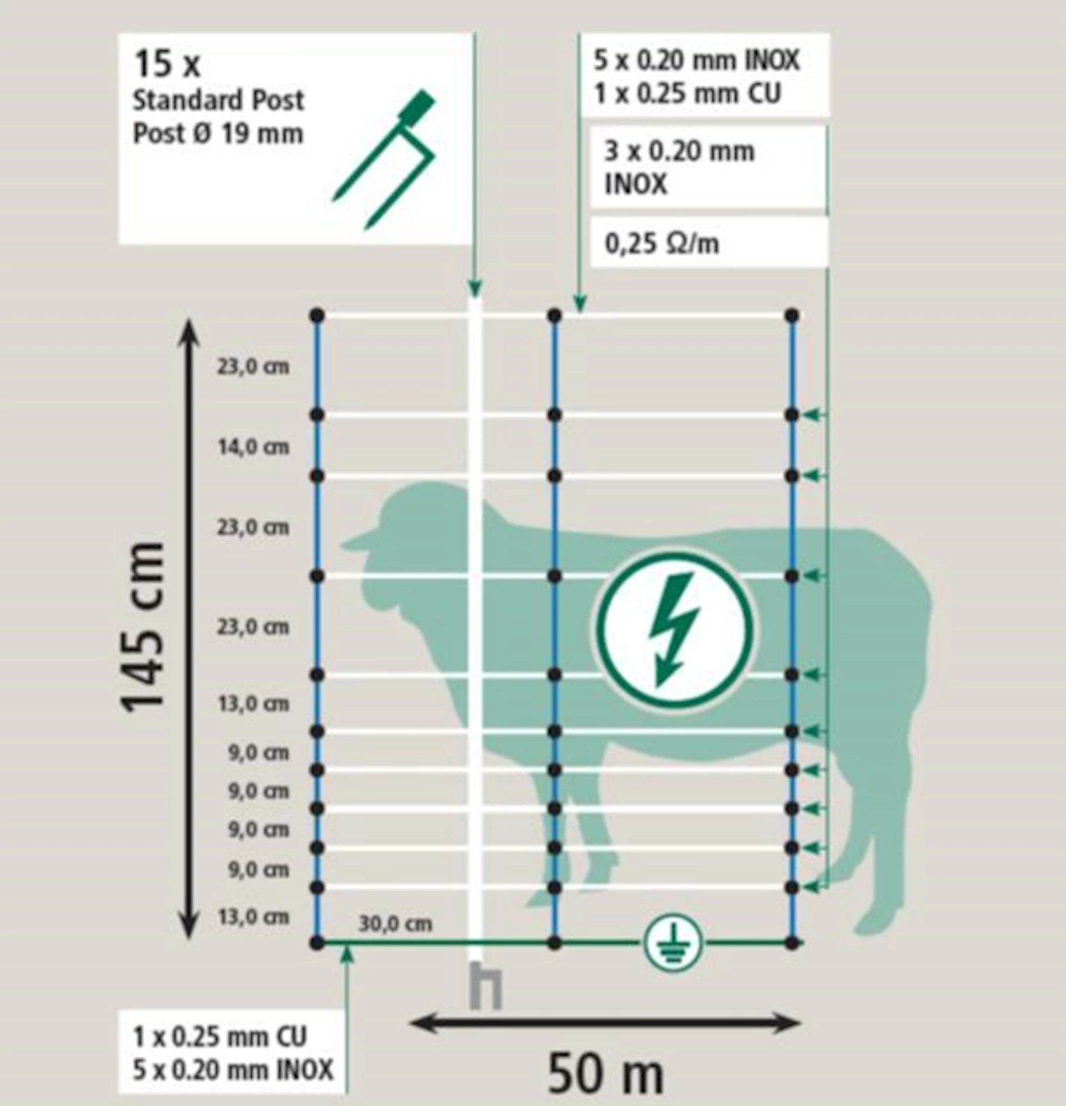 Weidezaunnetz 50 m × 145 cm