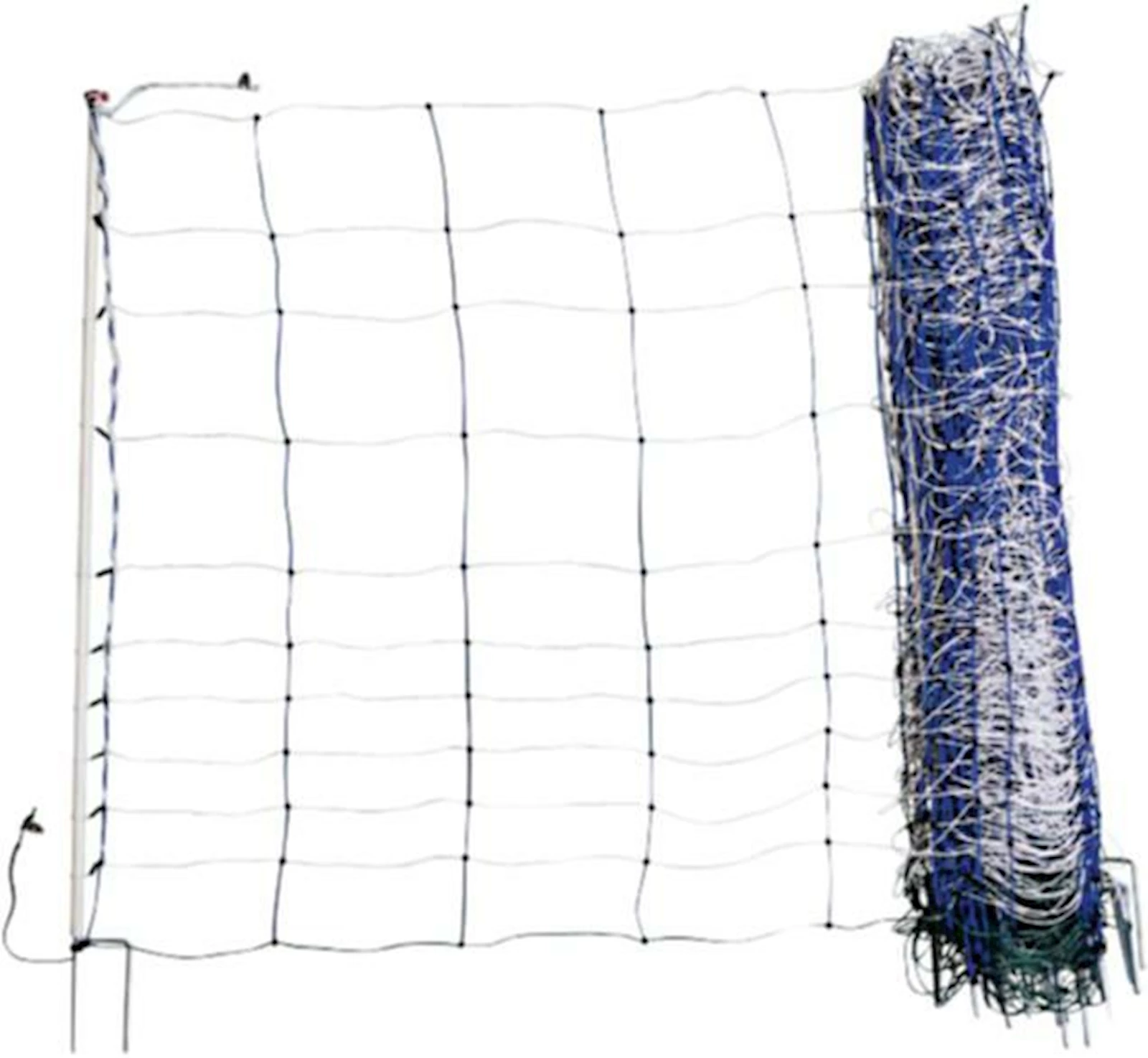 Für zusätzliche Stabilität sind in der Vertikalen starre Kunststoffstreben verbaut, die alle 30 cm fest mit den 11 horizontalen Litzen verbunden sind. 10 der Litzen sind stromführend, wobei die verstärkte Oberlitze mit hoher Leitfähigkeit für eine zuverlässige Abschreckung sorgt. Am Netzanfang und -ende befinden sich Edelstahl-Anschluss-Clips, die eine einfache Verbindung mehrerer Netze ermöglichen.