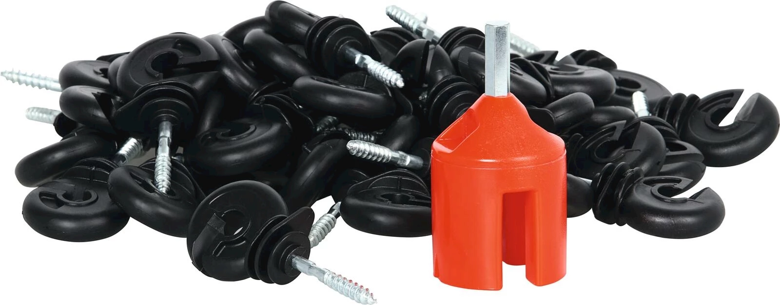 Der Ringisolator ist geeignet für Litze, Seil und Band bis 10 mm. Er verfügt über eine breite Drahtauflage und ist aus Kunststoff aus Recyclingmaterial gefertigt. Der robuste Isolator ist mit einem Holzgewinde ausgestattet und hat eine durchgehende, verzinkte Stütze mit einem Durchmesser von 5,3 mm. In praktischem Kunststoffkübel mit Deckel und robustem Henkel aus Stahl. 250 Isolatoren und eine Einschraubhilfe sind im Lieferumfang enthalten.