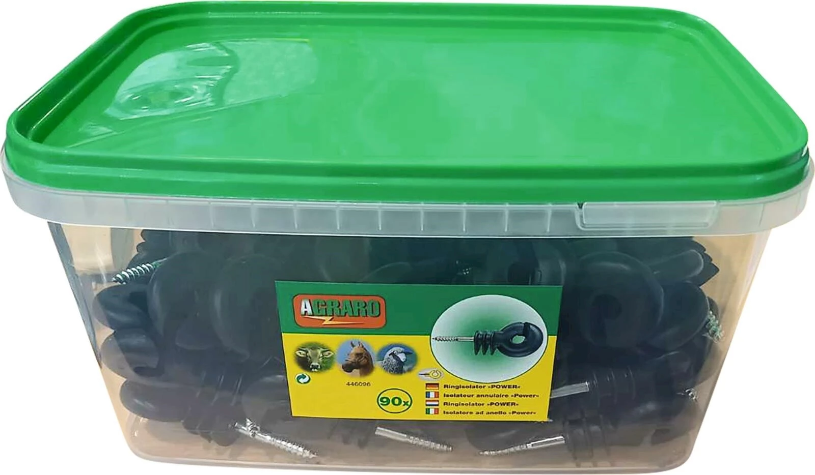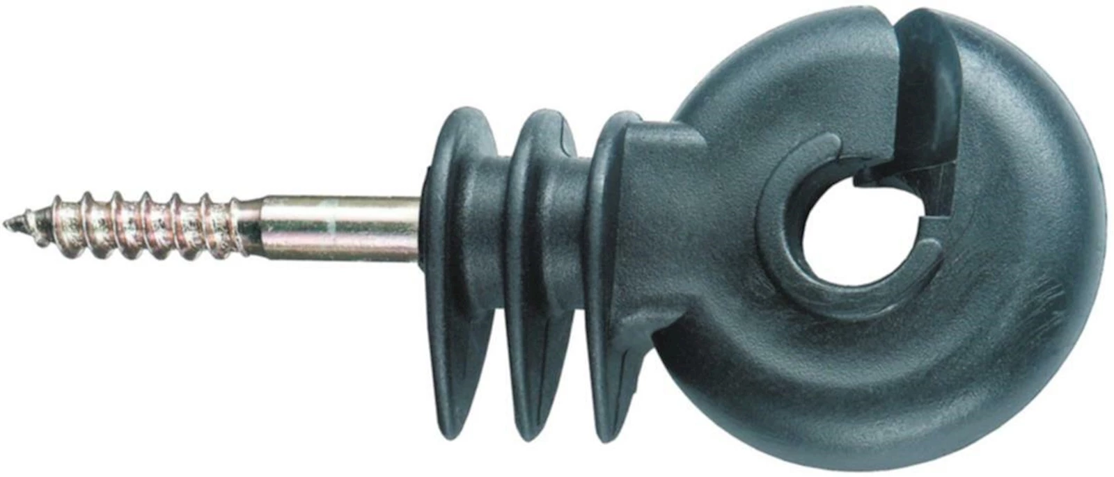 Der Ringisolator mit 6 mm verzinkter Stütze ist geeignet für Litzen, Draht, 6 mm Seil und 10 mm Band. Mit breiter Drahtauflage. Farbe: Schwarz. 90 Stück pro Eimer.