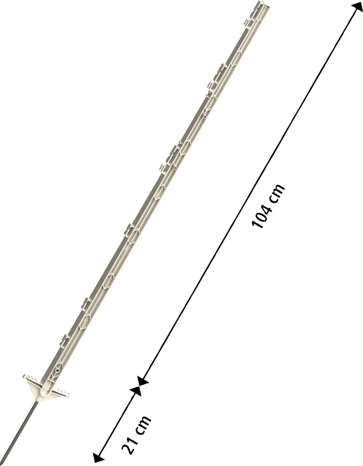 Dieser Pfahl ist mit Fiberglasverstärkung ausgestattet und eignet sich perfekt für alle gängigen Bänder, Seile, Litzen oder Drähte. Er kann problemlos für unterschiedliche Anzahl an Leitermaterialien genutzt werden. Der Kunststoffpfahl bietet eine hohe Standfestigkeit dank einer zusätzlichen Längsverstrebung. Die Ösen an der Oberseite des Pfahls sind äusserst stabil und ermöglichen die einfache Befestigung von Bändern, Seilen und Litzen. Ein verzinkter Bodennagel sorgt für eine sichere Verankerung im Boden. Zudem verfügt der Pfahl über einen Doppeltritt für eine bequeme Handhabung. Extrem robust und langlebig. Er besteht aus UV-beständigem und frostsicherem Kunststoff, der allen Witterungsbedingungen standhält. Die lange Metallspitze erleichtert das Verankern im Boden, während die solide Verarbeitung des Pfahls höchste Qualität gewährleistet.