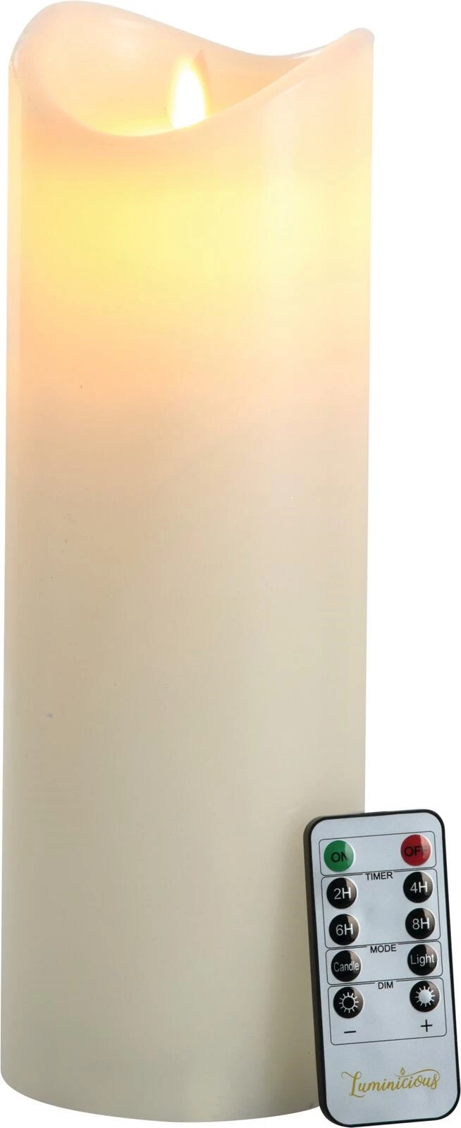 LED Kerze mit warmweissen, realistischen Flammeneffekten. Mit 2 / 4 / 6 / 8 - Timer- und Dimmerfunktionen, mit Fernbedienung. Die 2 × AA Batterien sind im Lieferumfang nicht enthalten.