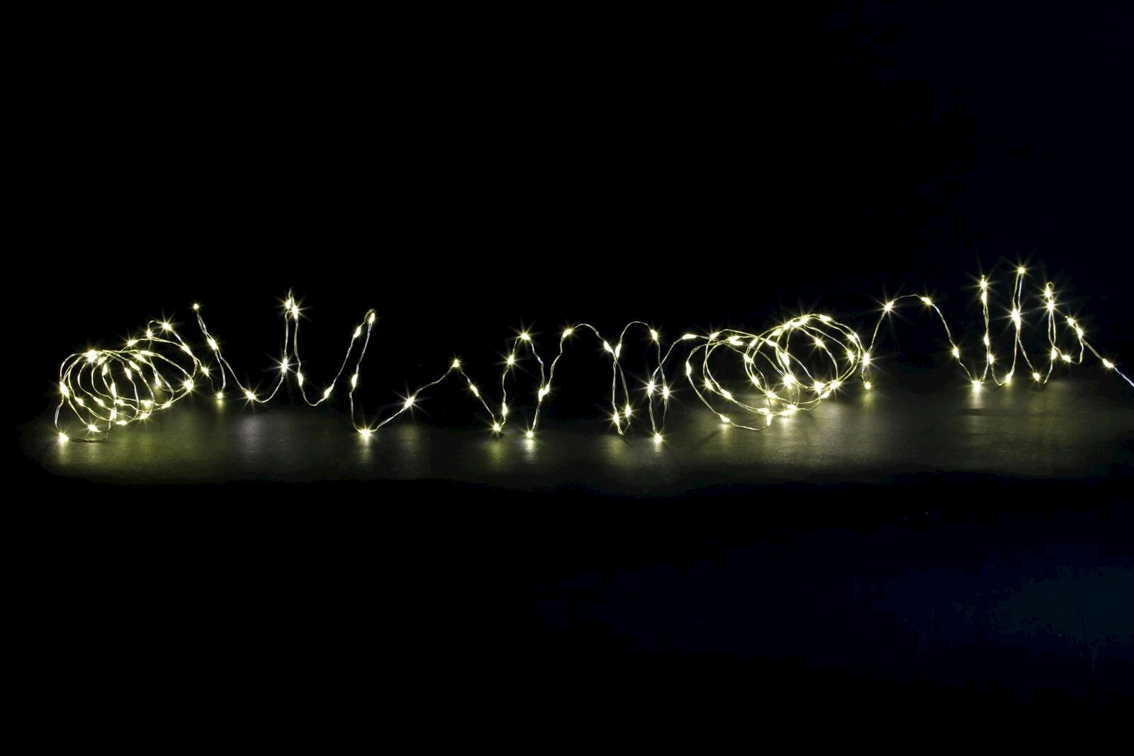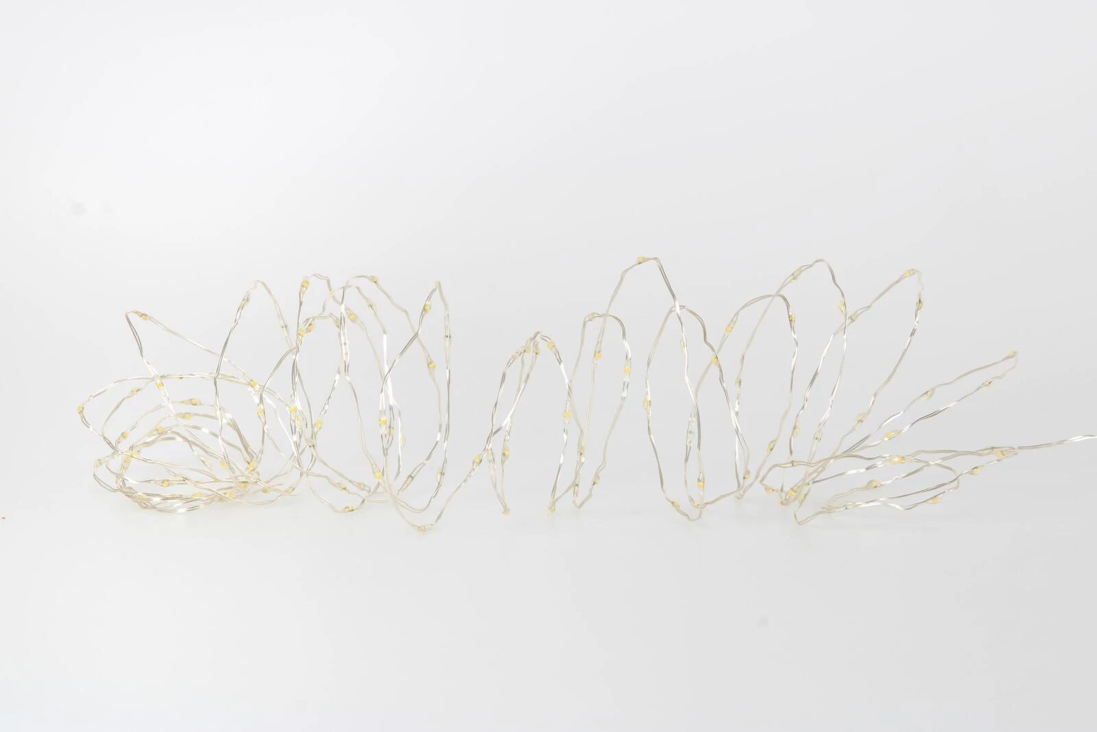 Die elegante Draht-Lichterkette bringt stimmungsvolles Licht in Ihre vier Wände. Auf einer Gesamtlänge von 200 cm verteilen sich 132 warmweisse Micro-LEDs, die ein sanftes und gleichmässiges Licht ausstrahlen. Die feinen Lichter sitzen auf einem flexiblen Silberdraht, der sich mühelos in Form biegen lässt.