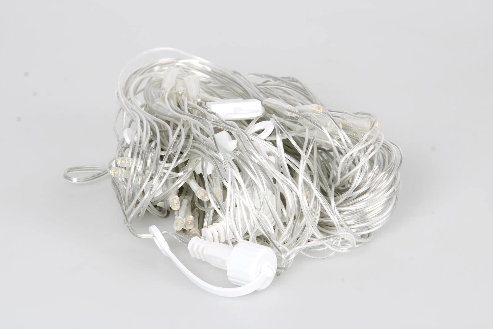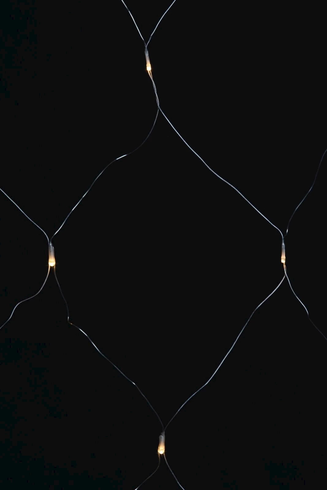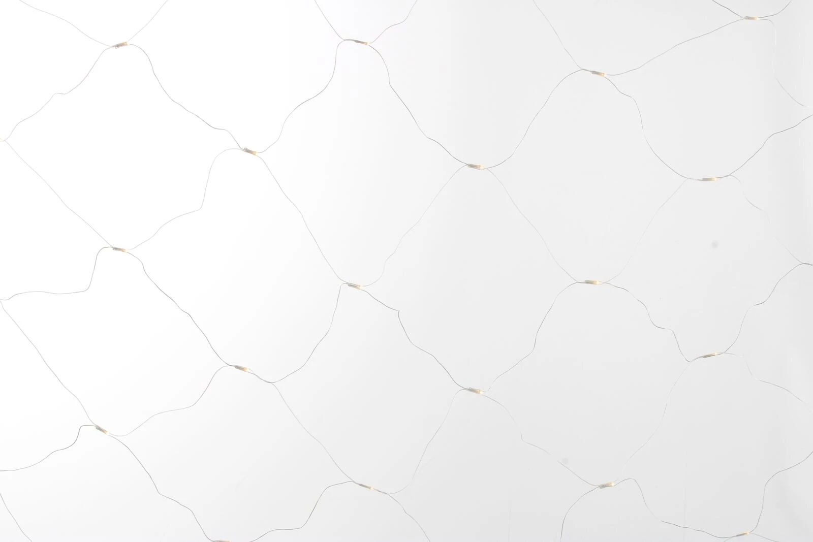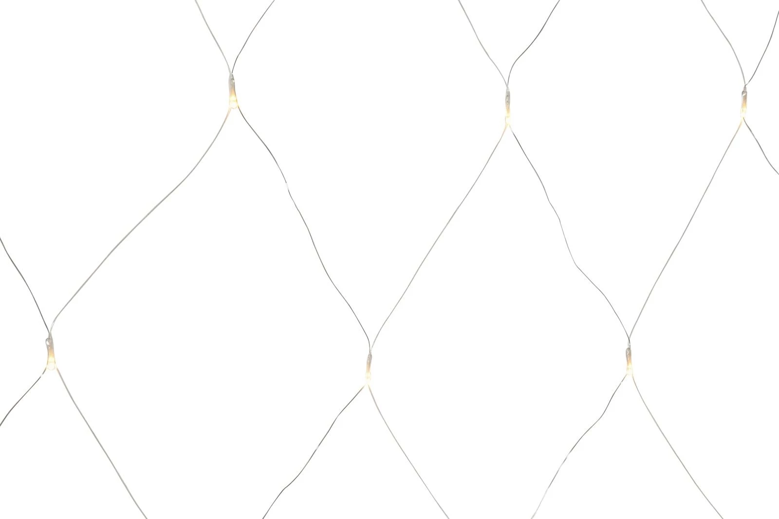 Mit 64 warmweissen LEDs mit transparentem Kabel. Schutzklasse: IP 44. Leistung: 3,6 W. Masse: 2 × 2 m. Inkl. Stecker, Buchse und 4 Haken. Exkl. E-Transformer.