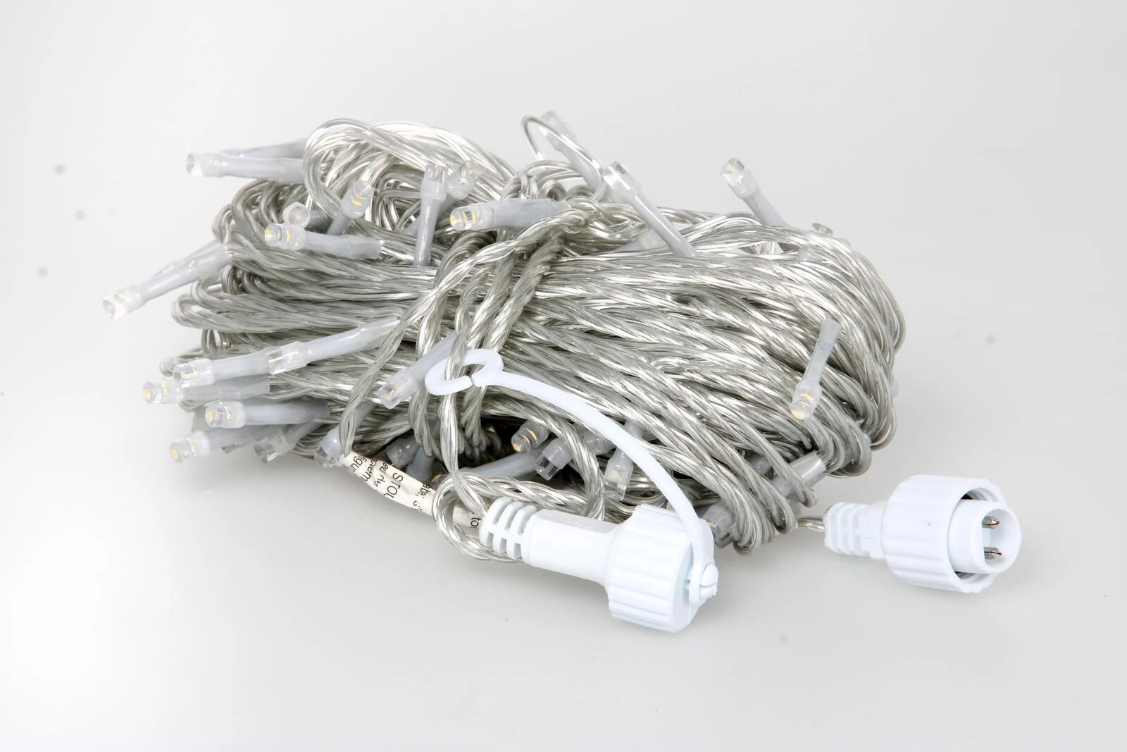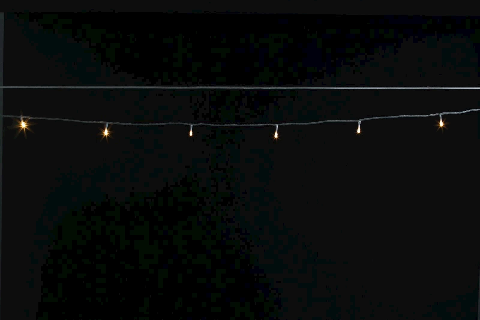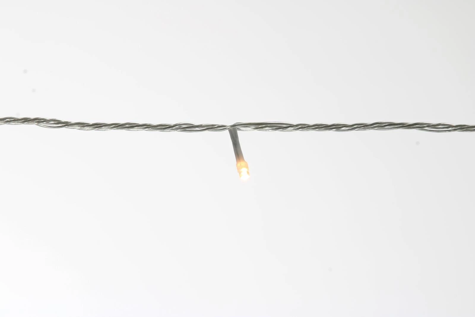 Mit 80 warmweissen LEDs und transparentem Kabel. Für den Innen- und Aussenbereich. Schutzklasse: IP44. Betriebsspannung: 24 V. Masse: 14 m. Inkl. Stecker und Buchse. Exkl. E-Transformer.