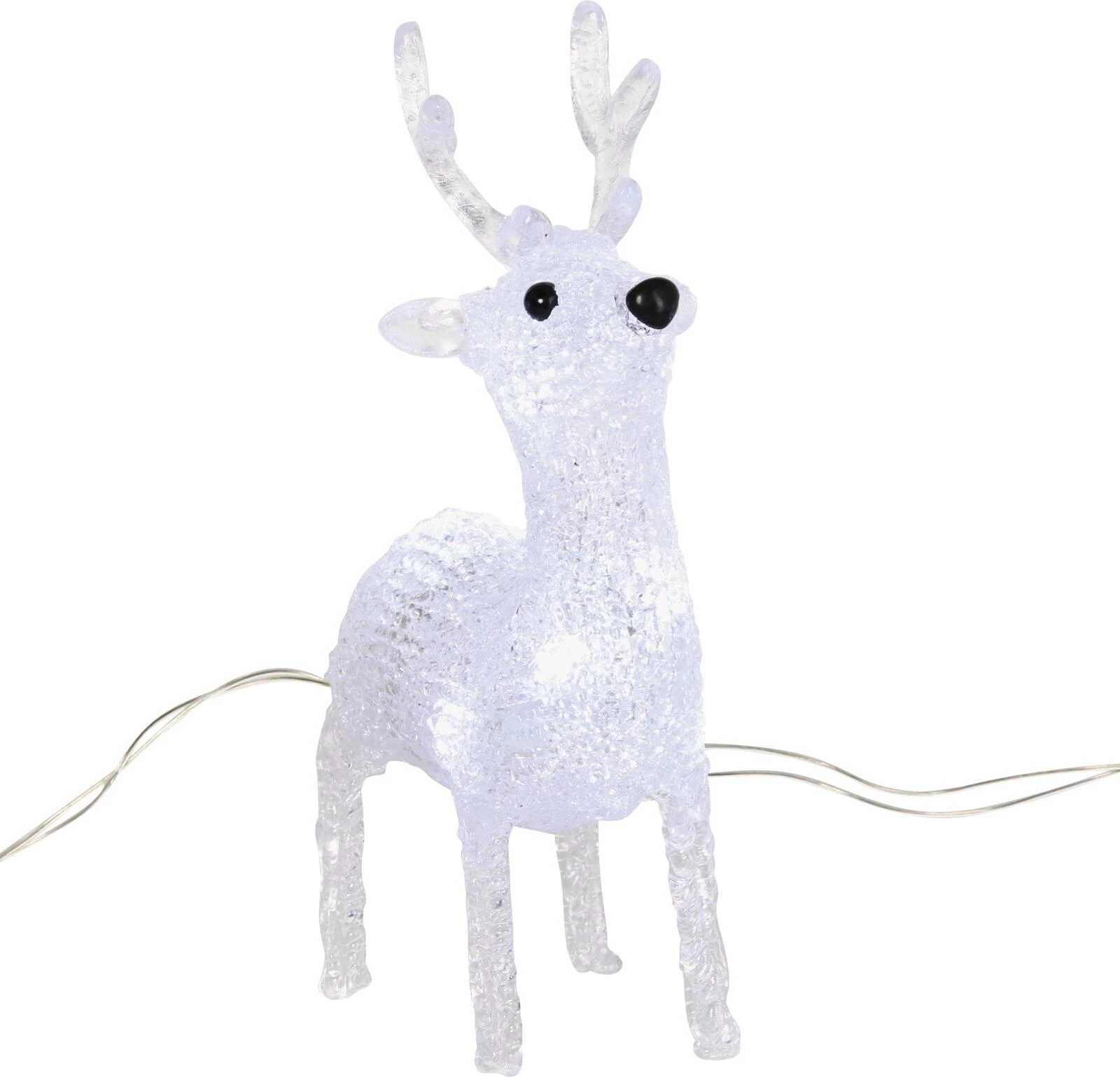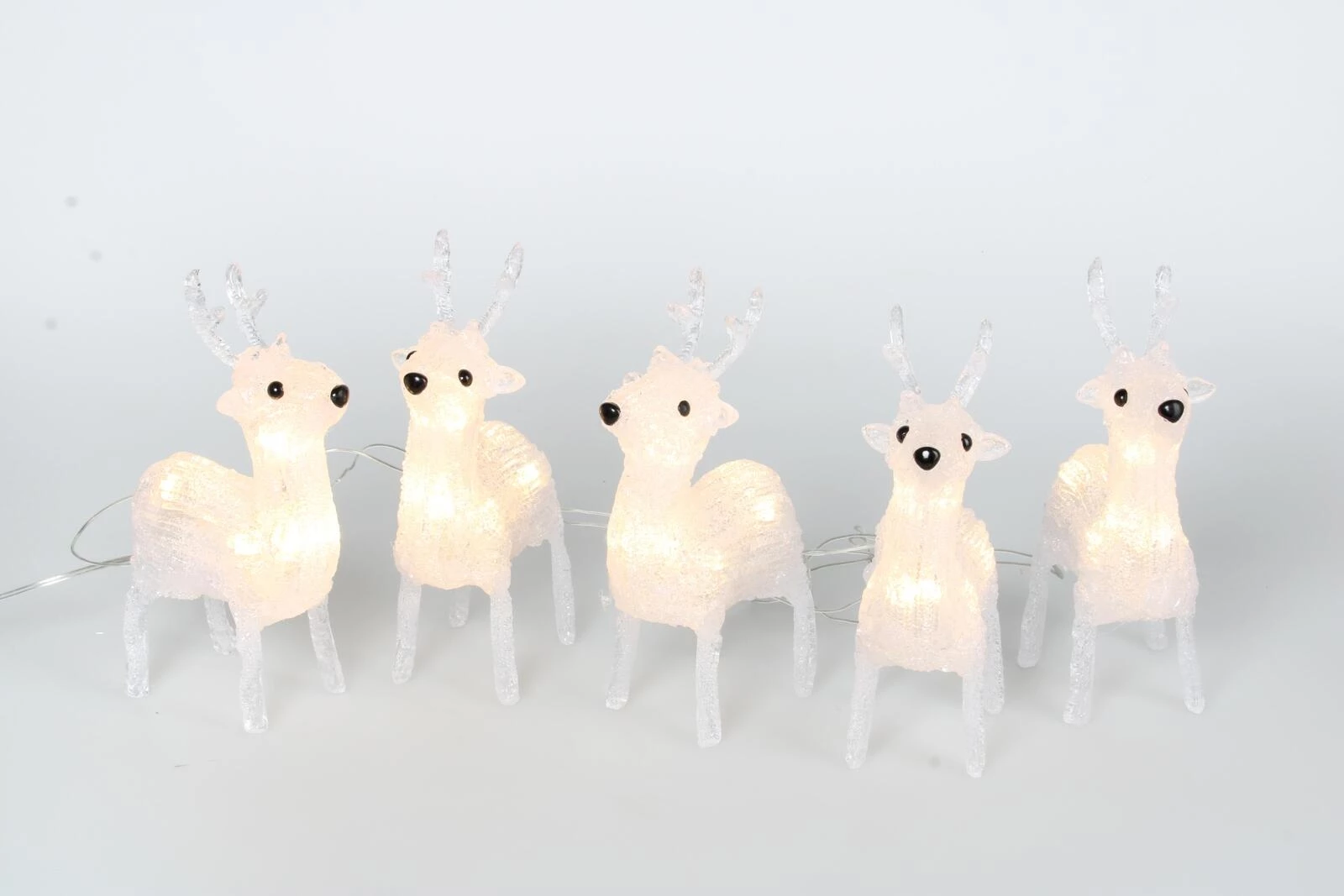 Die weihnachtliche Rentierlichterkette besitzt 40 warmweisse LEDs, welche bei 2'500 Kelvin leuchten. Die Kette mit den fünf leuchtenden Rentieren ist ausschliesslich für den Innenbereich geeignet. Die leuchtenden Rentiere bringen Sie in Weihnachtsstimmung und sind die ideale Dekoration in der Adventszeit. Der zur Funktion benötigte Transformator ist im Lieferumfang enthalten.