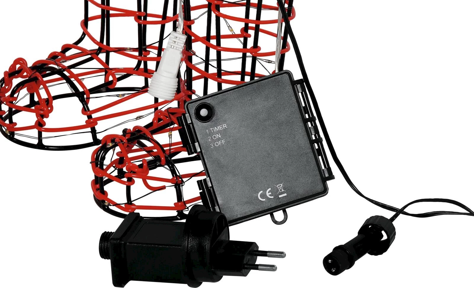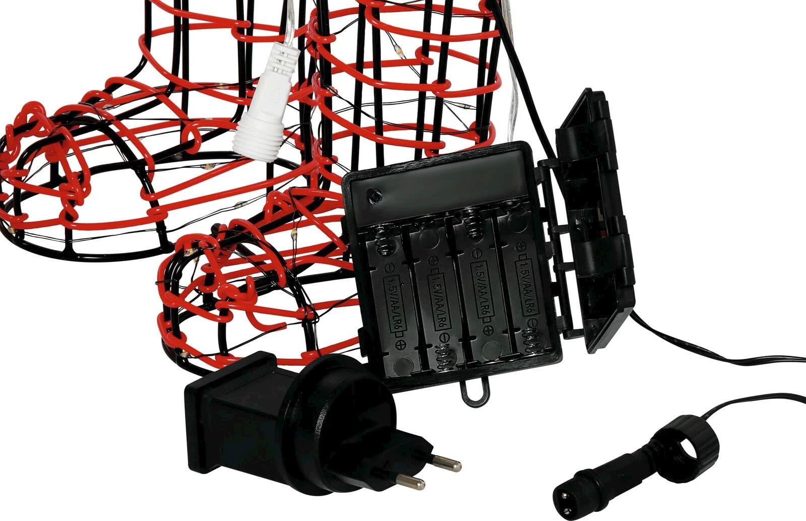 Mit 200 LEDs in warmweisser Lichtfarbe für den Innen- und Aussenbereich. Masse: 80 × 47 × 20 cm. Inkl. Transformer und Batteriebox. Exkl. Batterien (4 × AA).