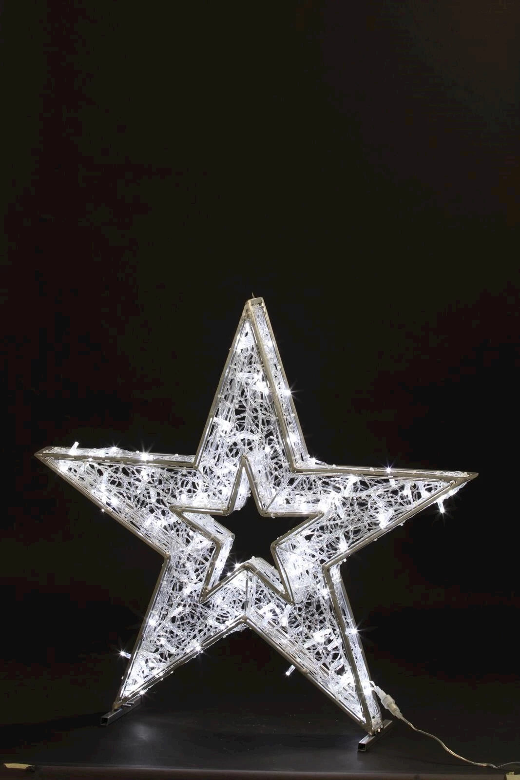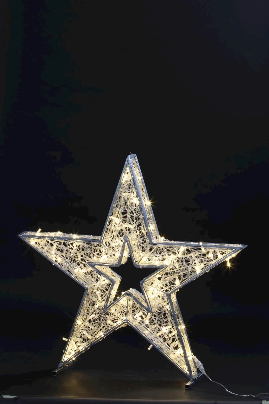Der imposante dekorative Stern mit integrierten 500 LED-Leuchten bietet eine regulierbare Lichtfarbe, die von warmen 2700 K bis zu kühlen 11300 K reicht. Der 120 cm grosse Dekostern läuft über die Steckdose mit einem mitgelieferten Transformer, die Gesamtleistung liegt bei 30 W. 2500 Lumen pro Meter lassen der Garten oder Innenbereich festlich beleuchten.