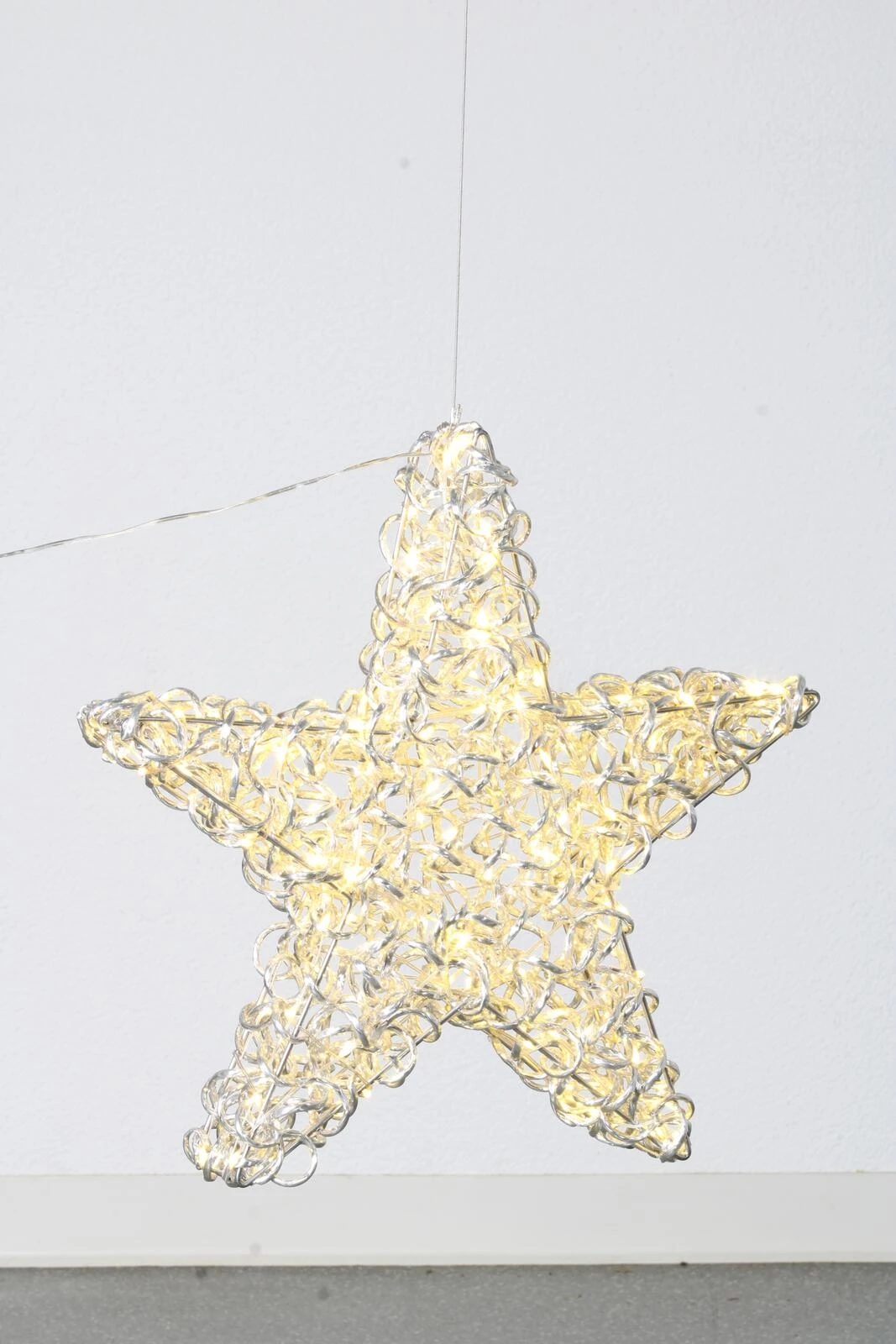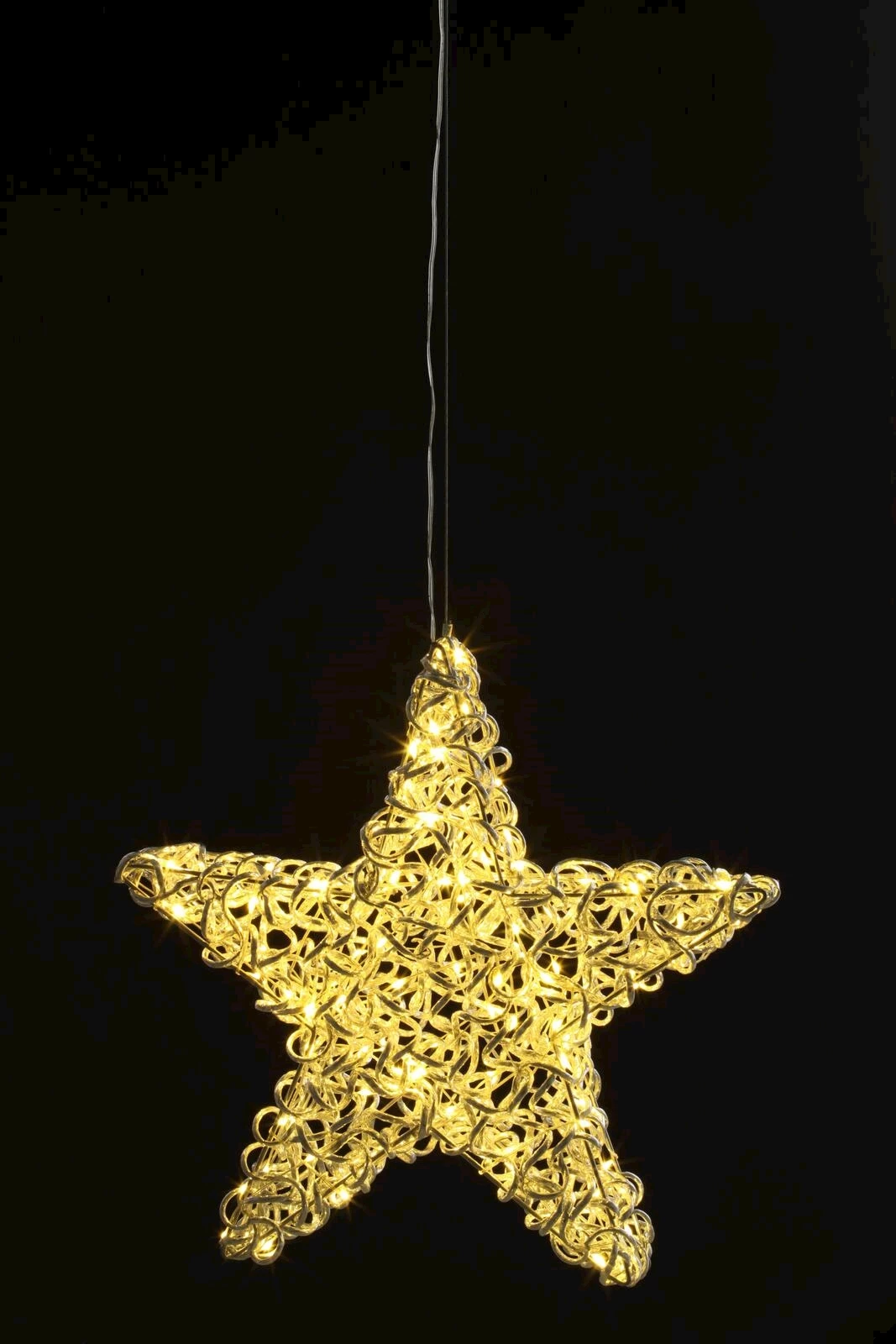 LED-Stern für den Innen- und Aussenbereich. Mit warmweisser Lichtfarbe. Leistung: 3,6 W, 4,5 V. Inkl. Transformer und 5 m Netzkabel. Masse: 50 × 12,5 × 48 cm.