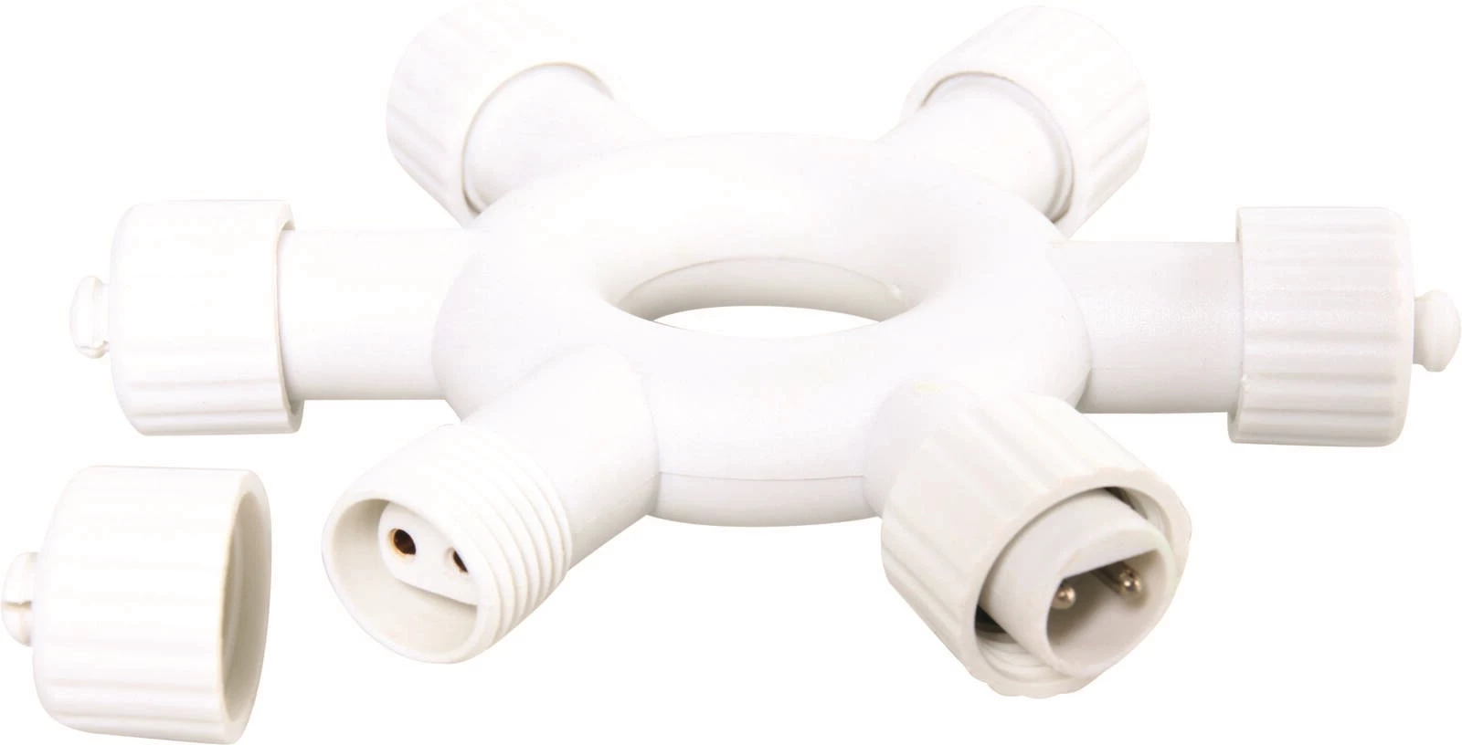 Verbindungsring mit 6 Anschlüssen für das System 1500 mit einer Spannung von 24 V. Durch die Schutzklasse IP44 ist der Ring gegen maximale Witterung geschützt.