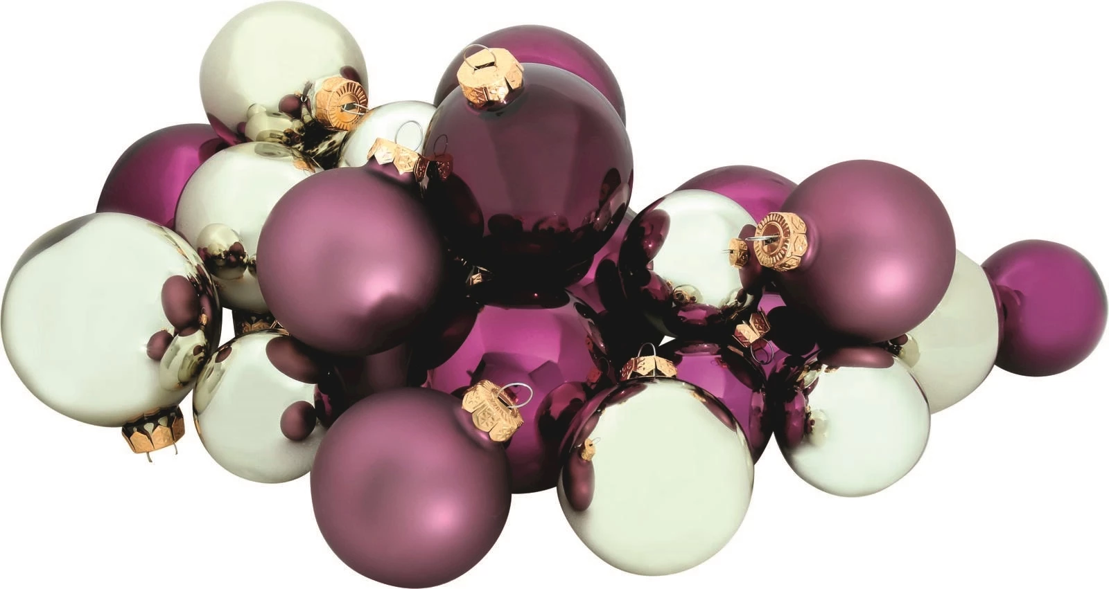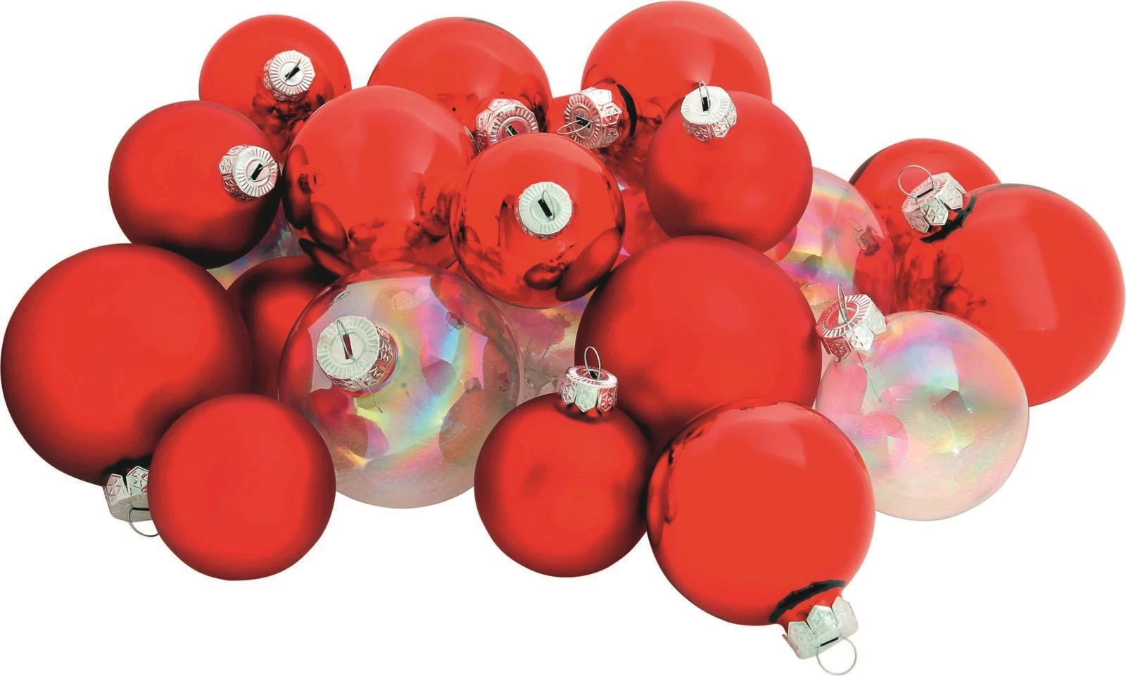 26 Kugeln aus Glas. In verschiedenen Grössen: 7 cm, 6 cm und 5 cm. In verschiedenen Farbvariationen verfügbar.