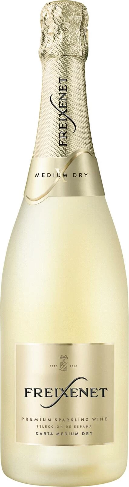 Der aus Spanien stammende Schaumwein Freixenet Carta Medium Dry überzeugt bei jeder Gelegenheit. Sein feines fruchtiges Bouquet mit Noten von Pfirisch und Honig machen den spritzigen Schaumwein unverkennbar. Der habltrockene Schaumwein mit feiner Perlage verfügt über eine angenehme Restsüsse. Er ist dank seiner halbtrockenen, frischen und ausgewogenen Art der ideale Begleiter, passt bestens zu Feierlichkeiten, zum Aperitif und auch zu leichten Speisen als auch zu Desserts.