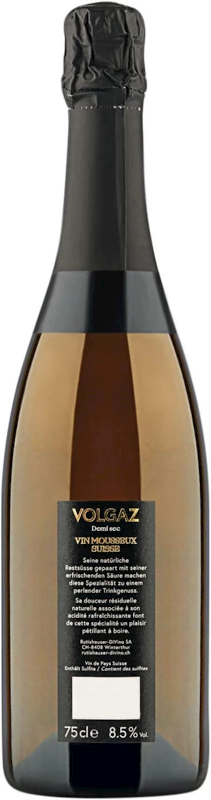 Der Schaumwein VOLGAZ, wird aus verschiedenen weissen Schweizer Trauben sorgfältig assembliert. Obwohl der VOLGAZ eher trocken ist, spielt eine schöne Restsüsse, begeleitet von fruchtiger Note und erfrischender ausgewogener Säure nach. In der Nase wirken angenehme blumige Aromen, Duft von Zitrusfrüchten, Holunder- und Lindenblüten. Die feine Perlage gepaart mit der ansprechenden hellgelben bis leicht grünlichen Farbe runden das Gesamtbild ab. Der süffige Schaumwein hat einen relativ tiefen Alkoholgehalt von 8,5 % vol. und schmeckt nicht nur zum Aperitif sondern auch prima zum Dessert.