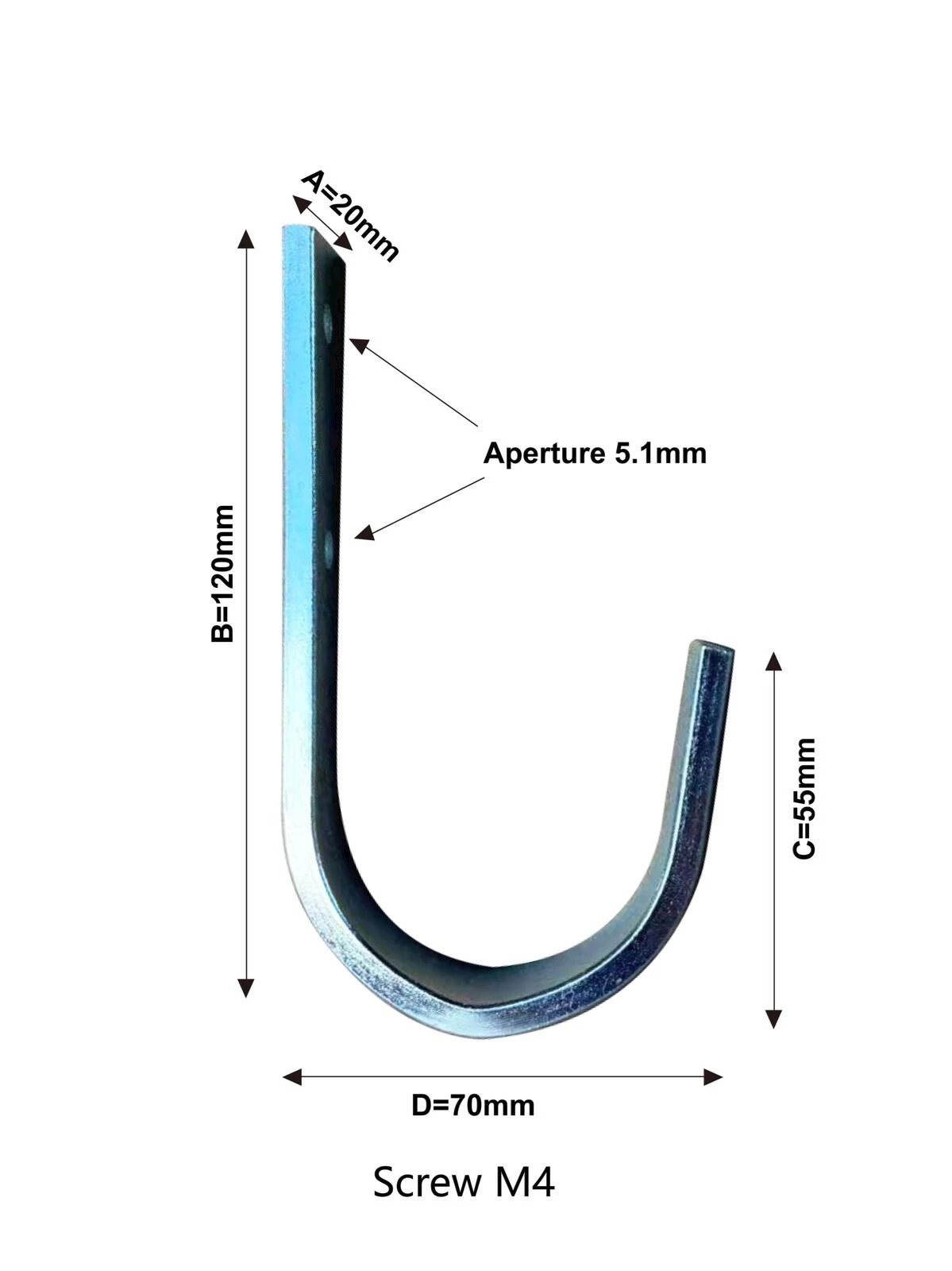 Der Wandhaken (2 × 11 × 5,5 × 6 cm) aus robustem Q195-Stahl trägt bis zu 40 kg und eignet sich ideal zur wandmontierten Aufbewahrung von Werkzeugen, Gartengeräten, Staubsaugern, Laubbläsern, Wasserrohren u. Ä. Besonders praktisch ist er in Garagen, Werkstätten oder Kellerräumen. Er wird mit Schrauben (nicht enthalten) direkt an Holz-, Beton- oder Fliesenwänden befestigt. Die Montage ist einfach. Trotz gewisser Wetterfestigkeit wird der Einsatz im Innenbereich empfohlen.