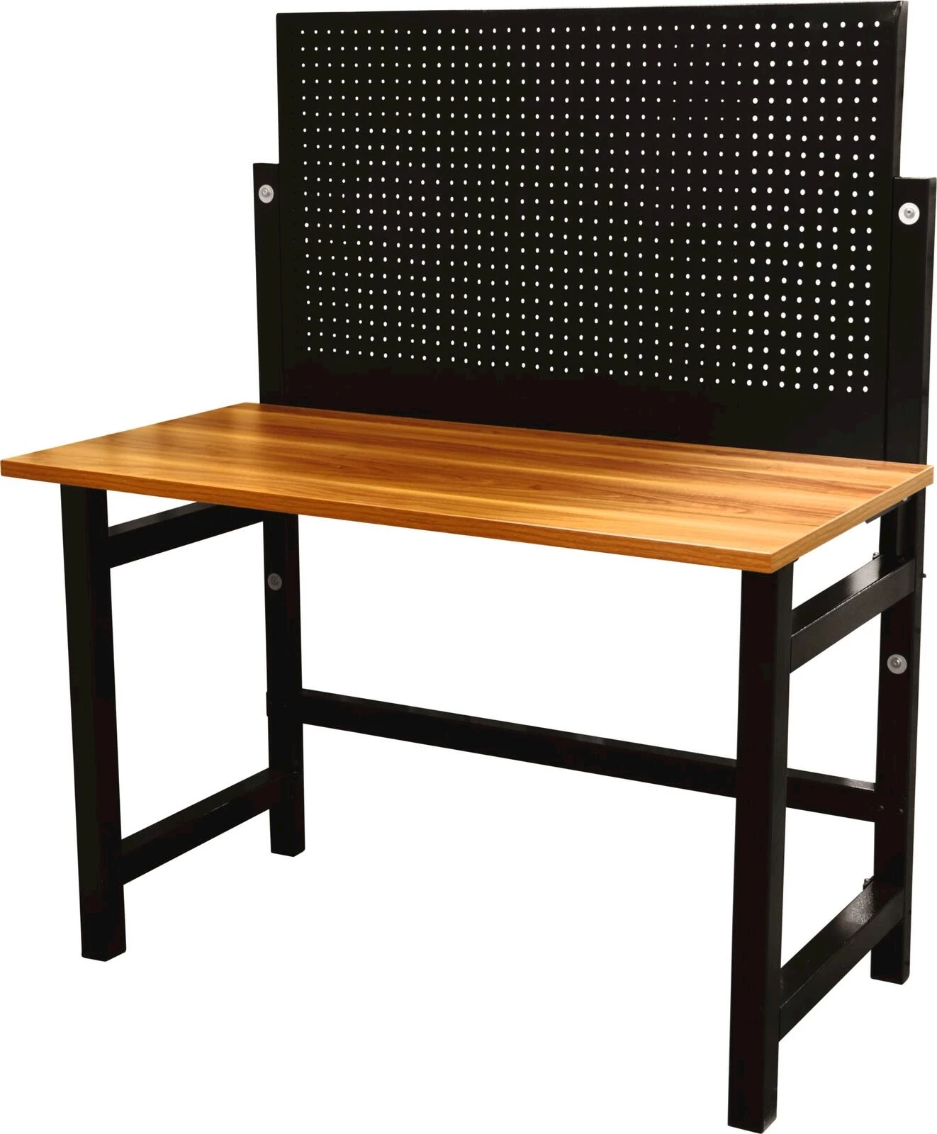 Mit diesem Werktisch gehen Montagearbeiten leicht von der Hand, zudem lässt er sich platzsparend an der Wand einklappen. Auf der Hartfaserplatte können Sie bis zu 200 kg Material deponieren und an der Lochplatte lassen sich max. 35 kg Werkzeug und Accessoires aufhängen. Ausgeklappt befindet sich die 2,5 cm Arbeitsplatte auf einer angenehmen Höhe von 80 cm. Zum Oberflächenschutz sind die Lochwand und das Gerüst mit einem Kunststoffspritzguss überzogen. Unmontiert.