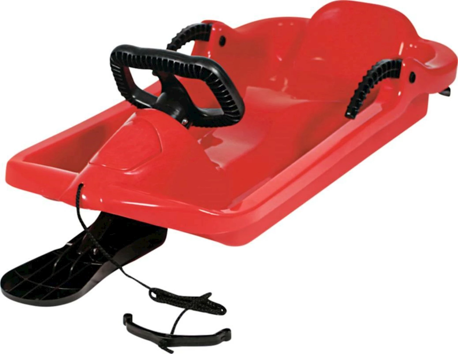 Der rote Bob ist das ideale Wintersportgerät für alle Kinder, die gerne draussen sind und den Schnee lieben. Er ist für eine Person geeignet und bietet mit den Fussstützen einen idealen Halt für den Fahrer. Mit den beiden Bremsen rechts und links kann die Fahrt verlangsamt oder gestoppt werden. Insgesamt kann der Bob eine Person bis 50 kg tragen und er ist aus Kunststoff gefertigt. Vorne an der Front ist eine Leine befestigt, damit er hinterher gezogen werden kann.