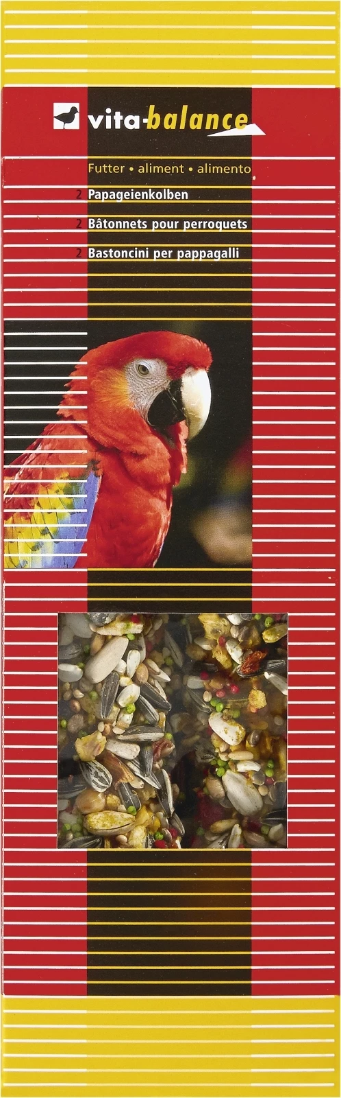 Die Papageienstengel von Vita-Balance sind ein schmackhafter Snack mit vielen Vitaminen und Mineralstoffen. Die Stengel bieten einen artgerechten Verzehrspass und sind somit eine gesunde Belohnung für Ihre Papageien. Die Stengel bestehen aus: Getreide, Saaten, Früchten, Gemüse, Nüsse, Backwarenerzeugnisse und Honig. Wir empfehlen die Stengel gut verschlossen, kühl und trocken zu lagern. Geeignet für Papageien und Grosssittiche. 2 Stück pro Packung.