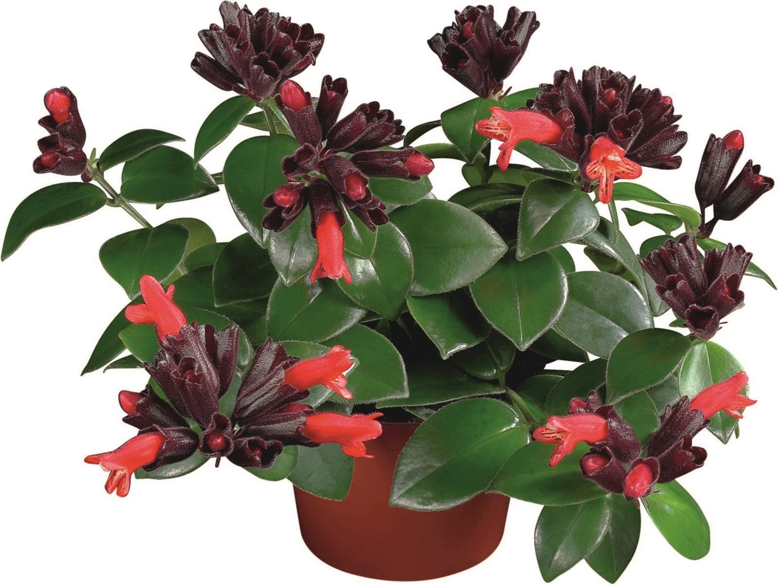 Die auch Schamblume genannte Hängepflanze bildet im Frühjahr rote Blüten. Immergrüne Zimmerpflanze mit mittelgrünem Blattwerk.