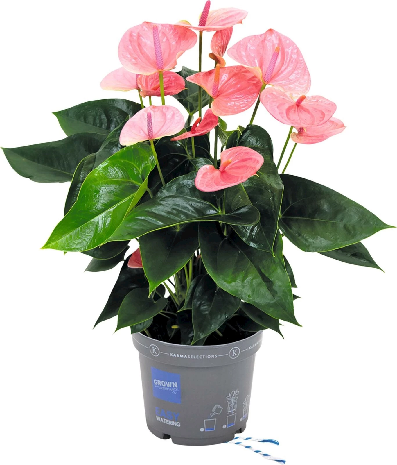 Die Anthurium ist eine Gattung von Pflanzen, die zur Familie der Araceae gehört. Sie sind auch unter den Namen Flamingoblume oder Herzanthurium bekannt. Sie sind bekannt für ihre auffälligen herzförmigen Blüten, die in einer Vielzahl von Farben wie Rot, Pink, Weiss und Orange erhältlich sind. Anthurien sind tropische Pflanzen, die aus den Regenwäldern Mittel- und Südamerikas stammen. Sie wachsen in Form von Sträuchern oder kleinen Bäumen und erreichen in der Regel eine Höhe von 1 bis 2 Metern. Die Blätter sind gross, herzförmig und dunkelgrün. Die Blüten sind auffällig und in der Regel in einer Farbe gefärbt, die von einem weissen oder grünen Schaft umgeben ist.