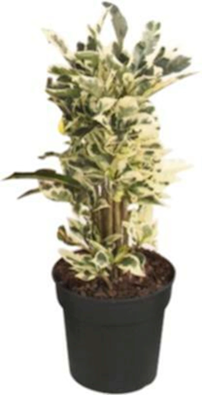 Codiaeum variegatum, auch Kroton genannt, ist eine farbenprächtige, immergrüne Zimmerpflanze, die durch ihre intensiv gefärbten, ledrigen Blätter auffällt. Die Blattfärbung variiert je nach Sorte in Gelb, Rot, Orange, Grün und Violett und verleiht Wohnräumen, Büros oder Wintergärten einen tropischen Flair. Je nach Art und Pflege erreicht der Kroton eine Wuchshöhe von 60 bis 150 cm und wächst dabei aufrecht bis leicht verzweigt.