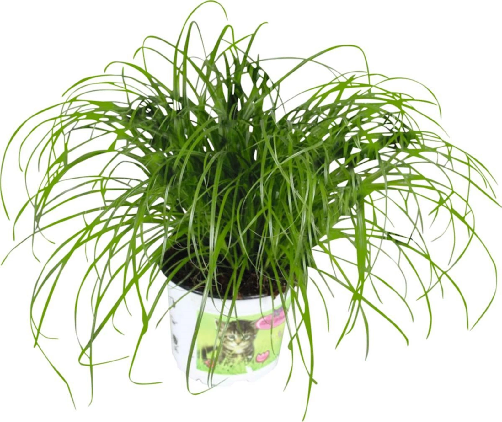 Katzengras (Cyperus alternifolius “Zumula”) ist eine ausdauernde, krautige Pflanze, die zur Familie der Lippenblütler (Lamiaceae) gehört. Katzengras hat grüne, lanzettliche Blätter. Die Pflanze hat einen starken, aromatischen Duft, der besonders bei Katzen beliebt ist. Es fördert die Verdauung und trägt zu einer gesicherten Vitaminversorgung der Katze bei. Katzengras ist besonders pflegeleicht und wird von Katzen geliebt. Darüber hinaus ist Katzengras auch eine dekorative Zimmerpflanze. In der Kombination mit einem schönen Ziertopf ist sie ein echter Hingucker.